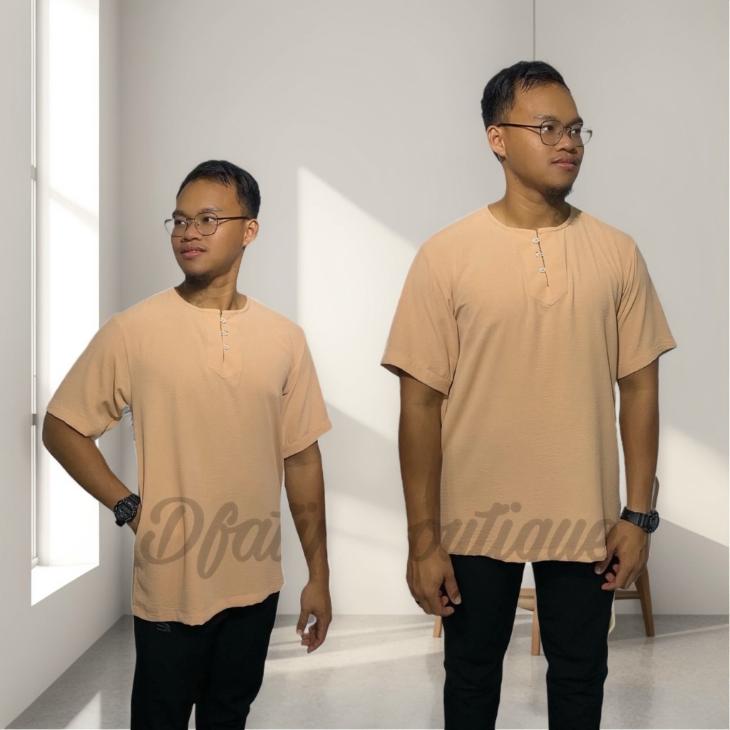 Baru Kurta Dewas Murah Cantik Lelaki Round Neck Baju Short Sleeve Kain CEY Ironless