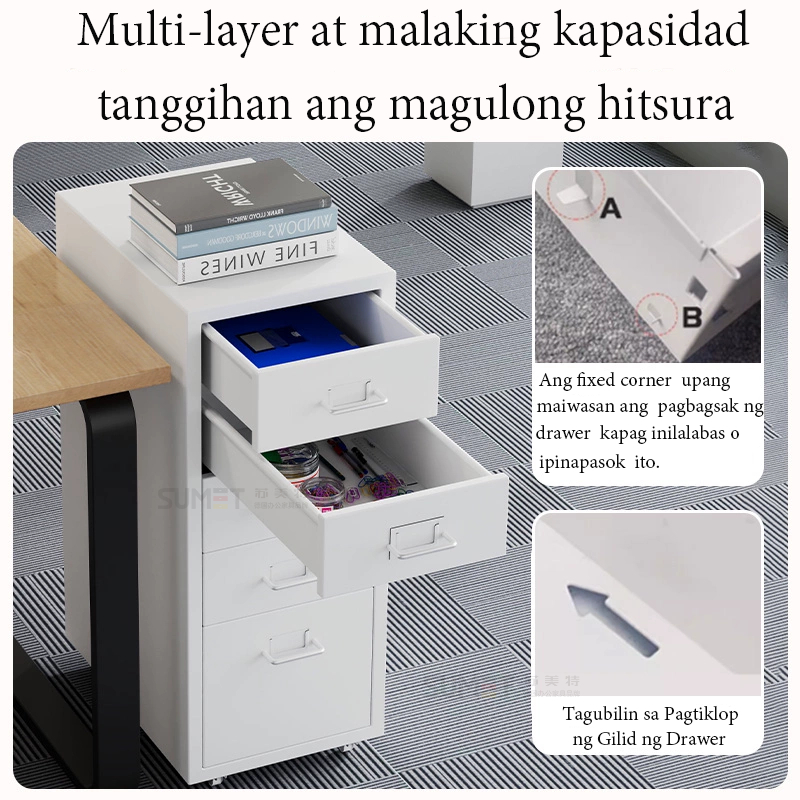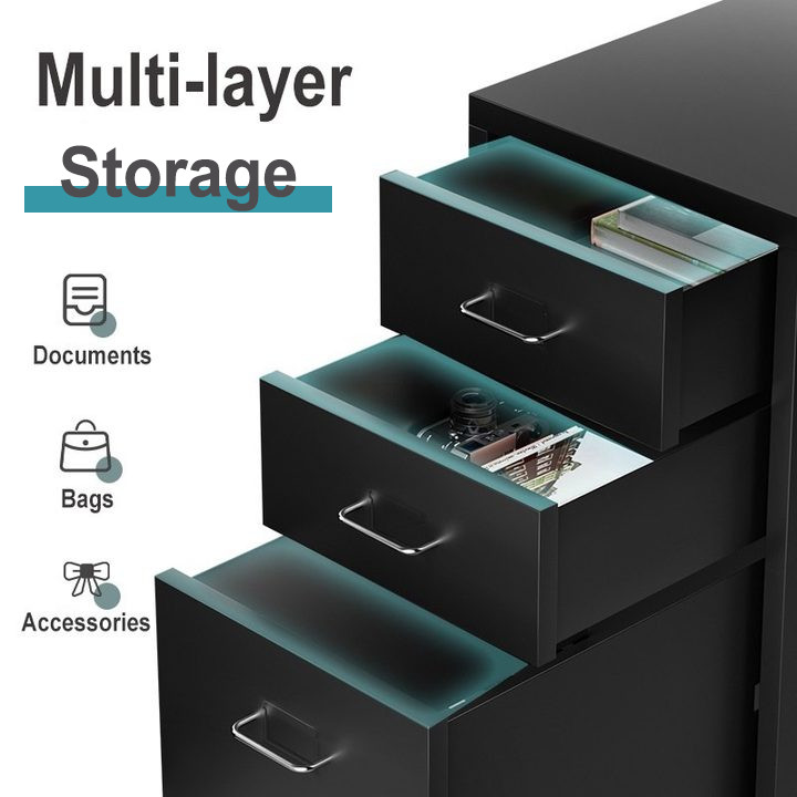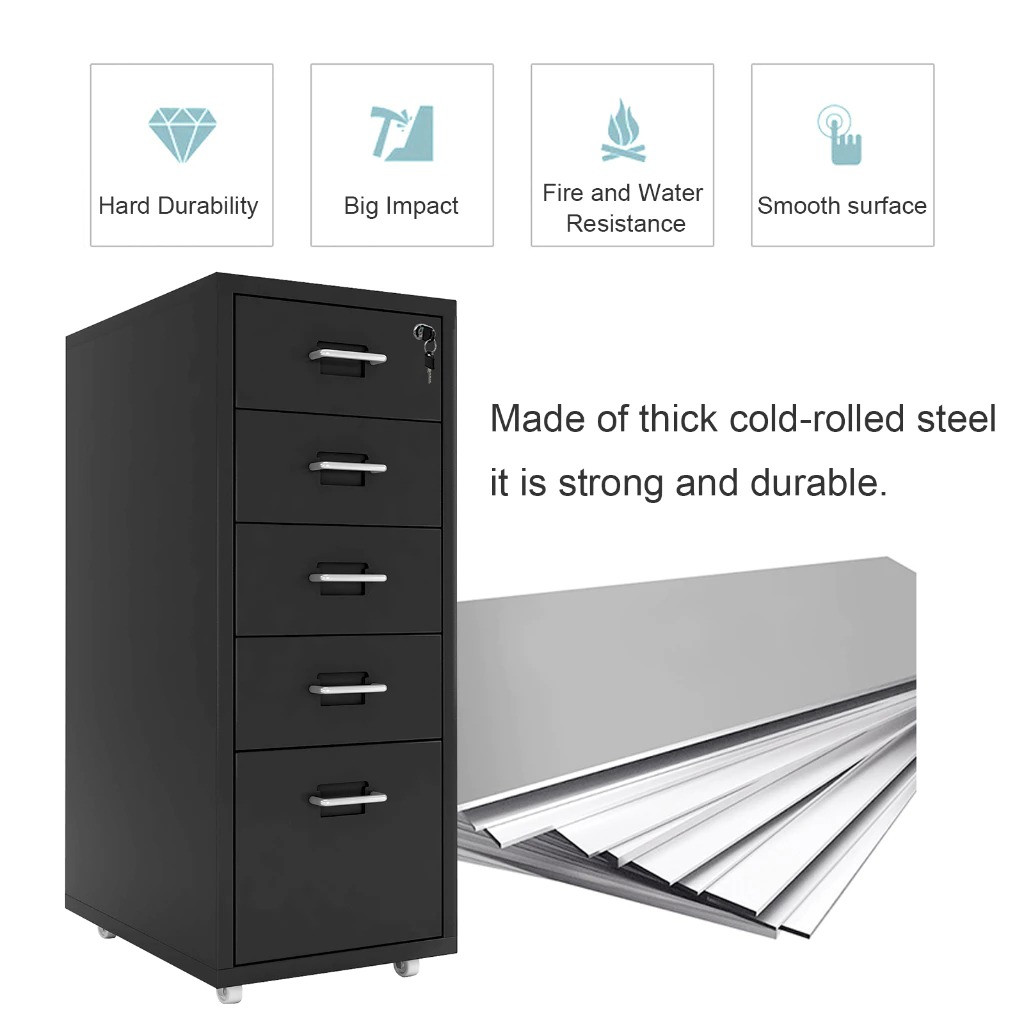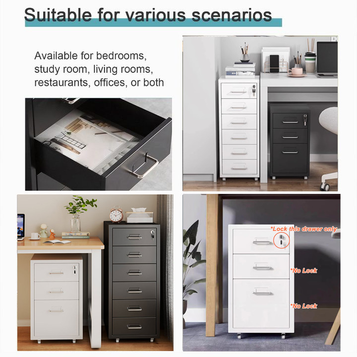 3/5/6L Metal Drawer Cabinet With Lock Under Desk Steel Cabinet With Wheels For Home Office