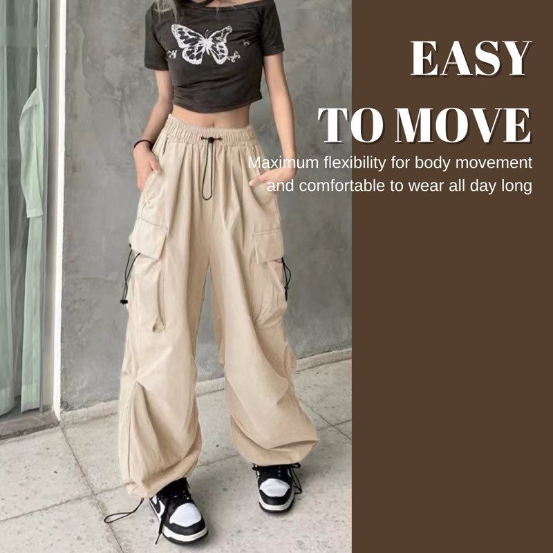 S-3XL Ready Stock 🇲🇾 Korean Style Pocket Long Pants Cargo/ Seluar Cargo Panjang Loose Perempuan C04