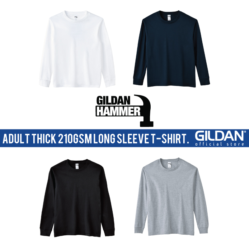 GILDAN Hammer Extra Thick Cotton Long Sleeve T-Shirt HA40 Unisex Comfortable Smooth Plain T-Shirt Baju Tebal - HA40
