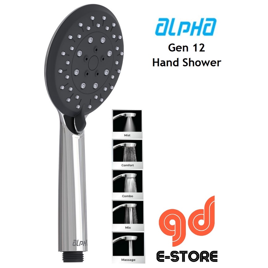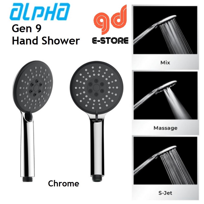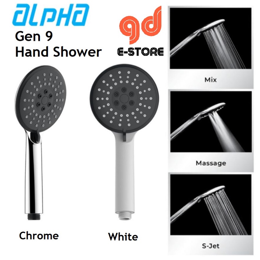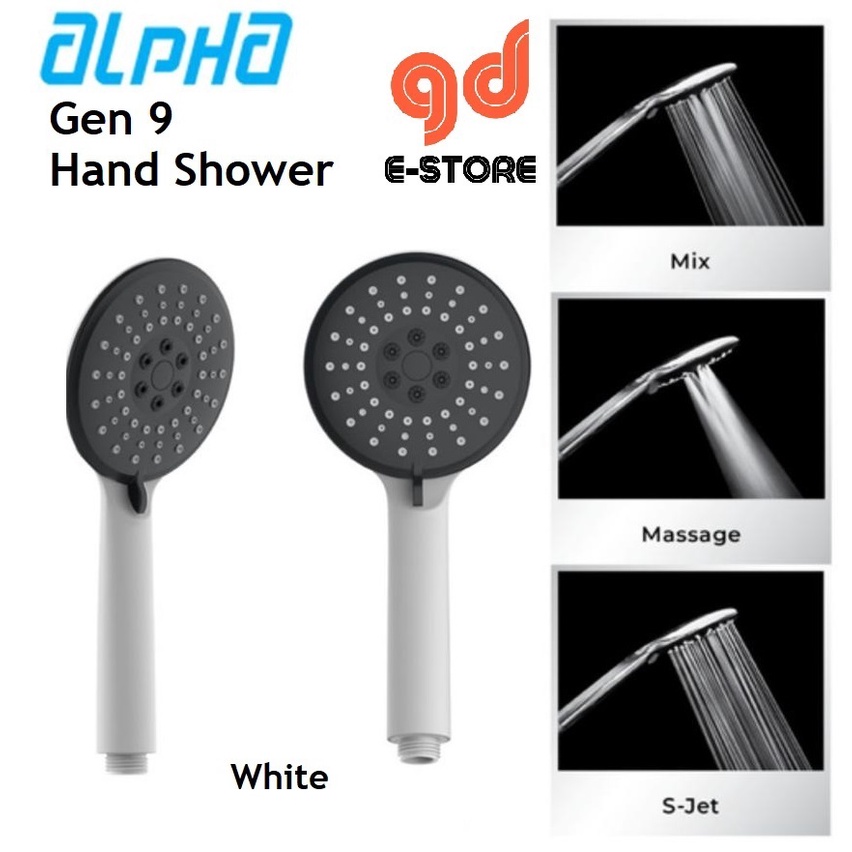 New Alpha Hand Shower Gen 9 / 12 Silver Shower Head White Silver Matt Black
