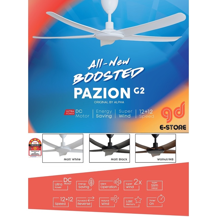ALPHA Alkova PAZION G2 DC Motor 12 Speeds Ceiling Fan With Remote Control Reverse Function 40'' 46'' 56''