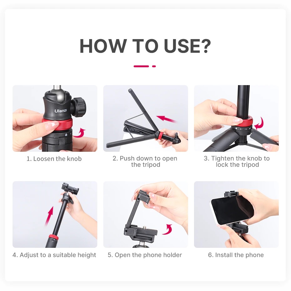 ULANZI MT-44 Extendable Tripod Selfie Stick Phone Holder Clip Vlog Mount for Smartphone DSLR Camera