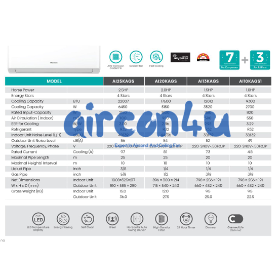 HISENSE KAGS Series R32 Inverter Air-Conditioner (1.0HP/1.5HP/2.0HP/2.5HP)