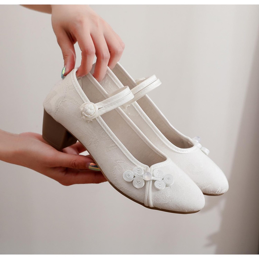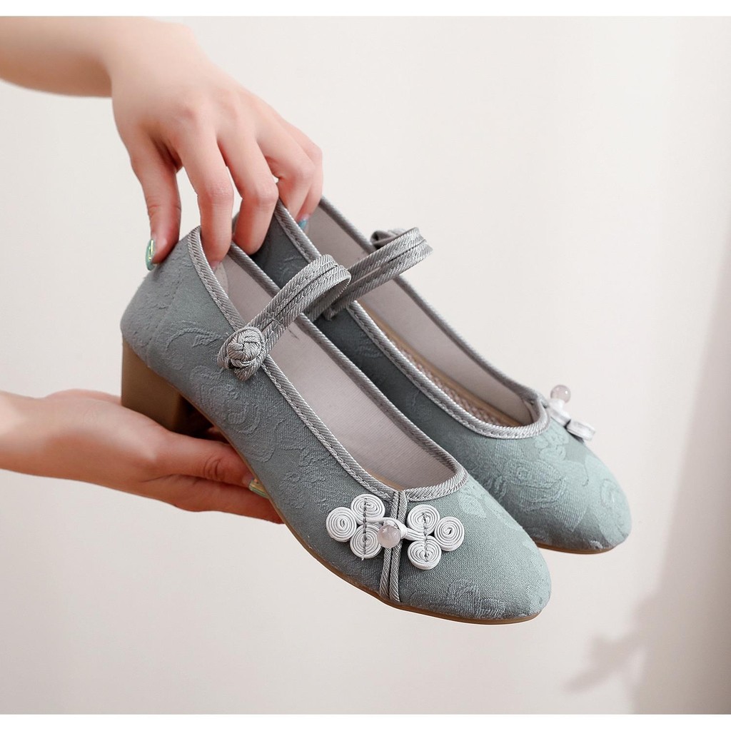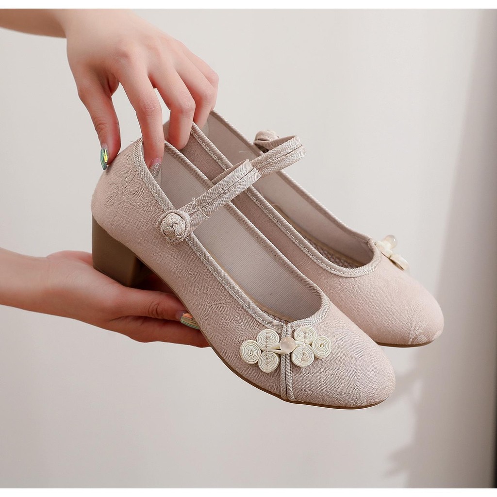 旗袍鞋女粗跟民中国风复古中国风绣花布鞋茶艺师古风广场舞蹈鞋子Chinese Non Slip Dance Embroidered Shoes Women Hanfu Shoes