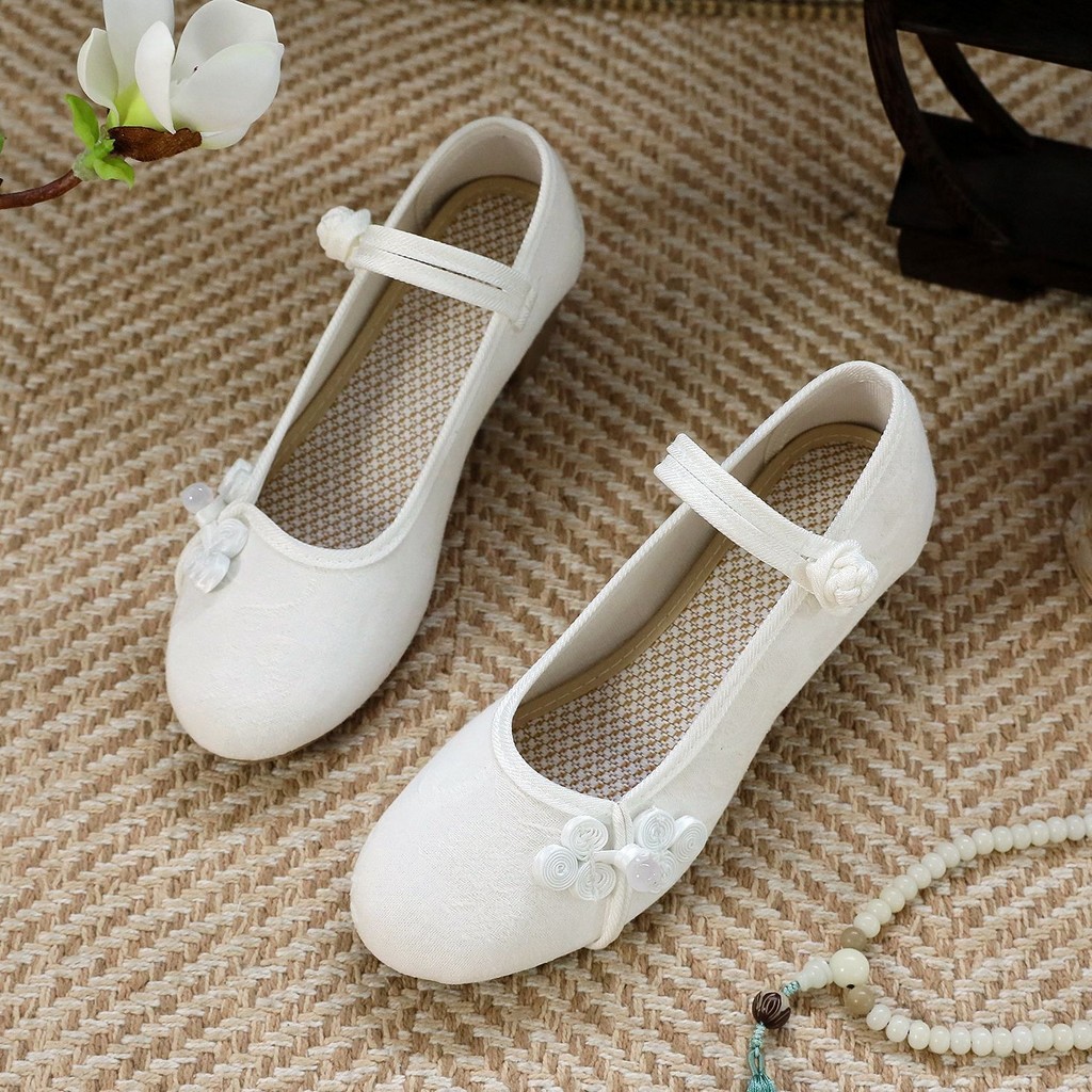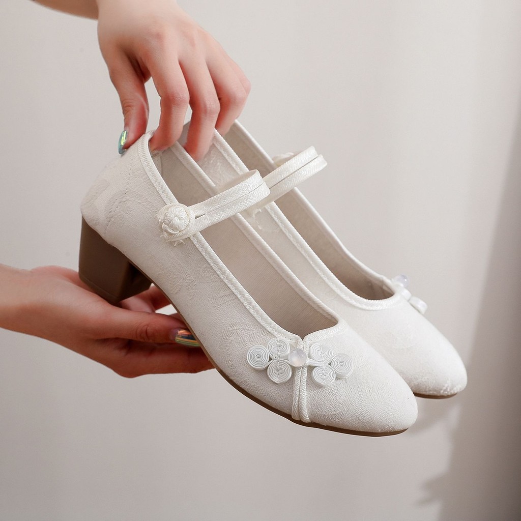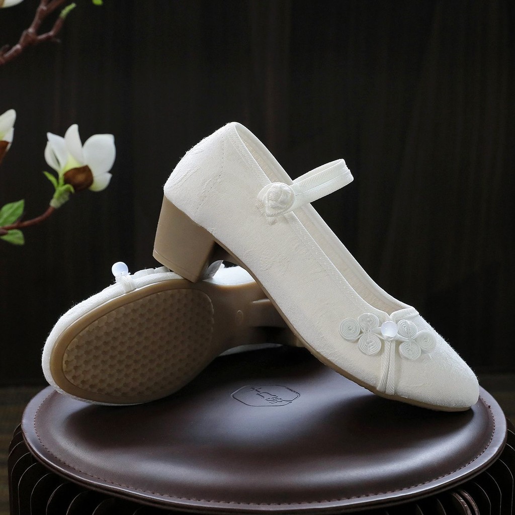 旗袍鞋女粗跟民中国风复古中国风绣花布鞋茶艺师古风广场舞蹈鞋子Chinese Non Slip Dance Embroidered Shoes Women Hanfu Shoes