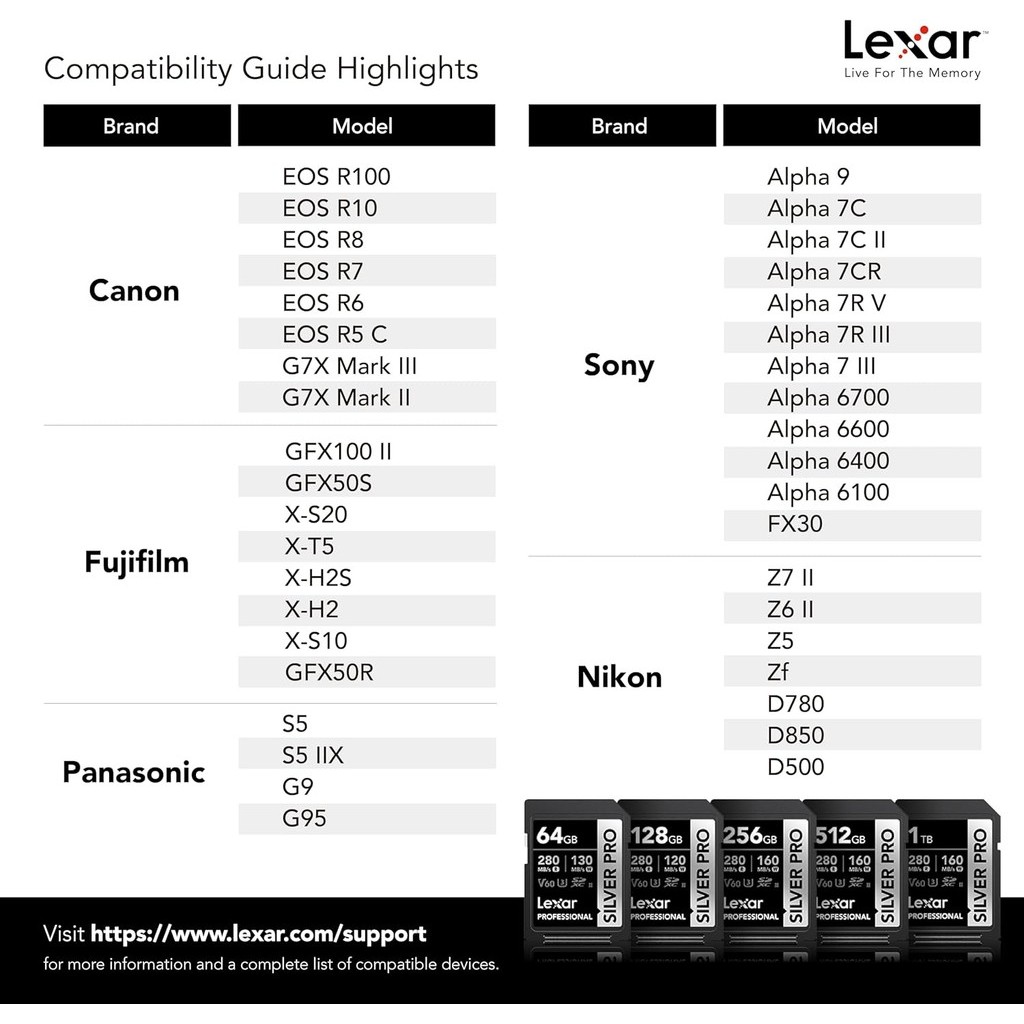 Lexar Professional SILVER PRO SD Card, UHS-II, C10, U3, V60, Full HD, 4K, Up To 280MB/s Read SDXC Memory Card