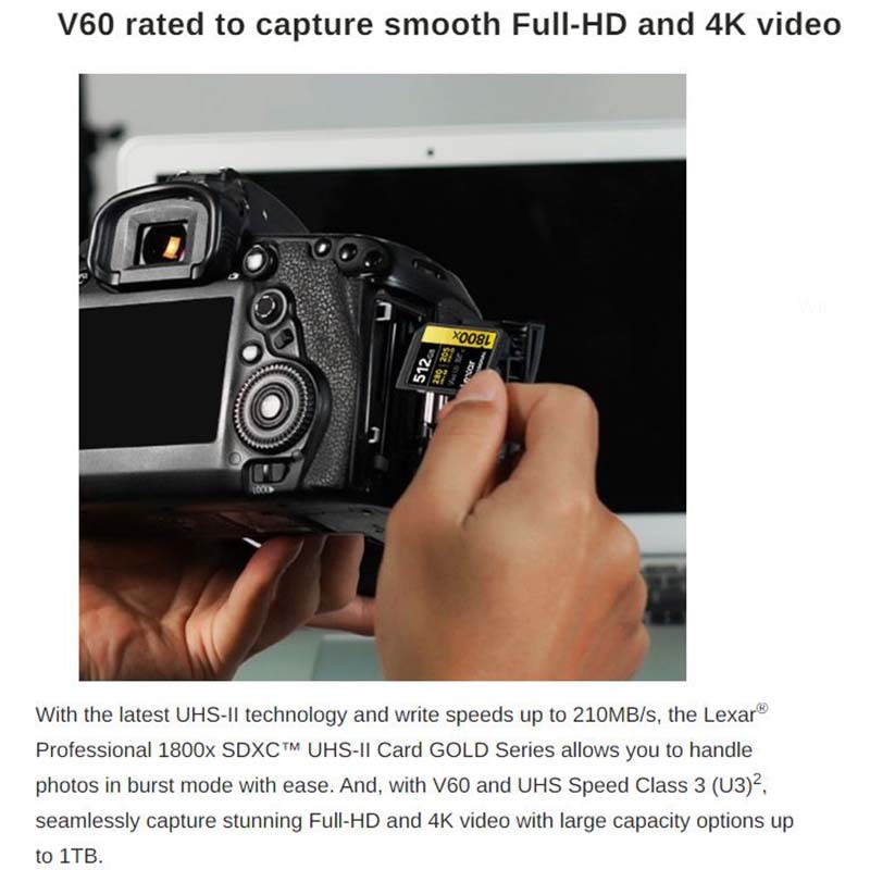 Lexar Professional 1800x SDXC U3 V60 UHS-II Card GOLD Series