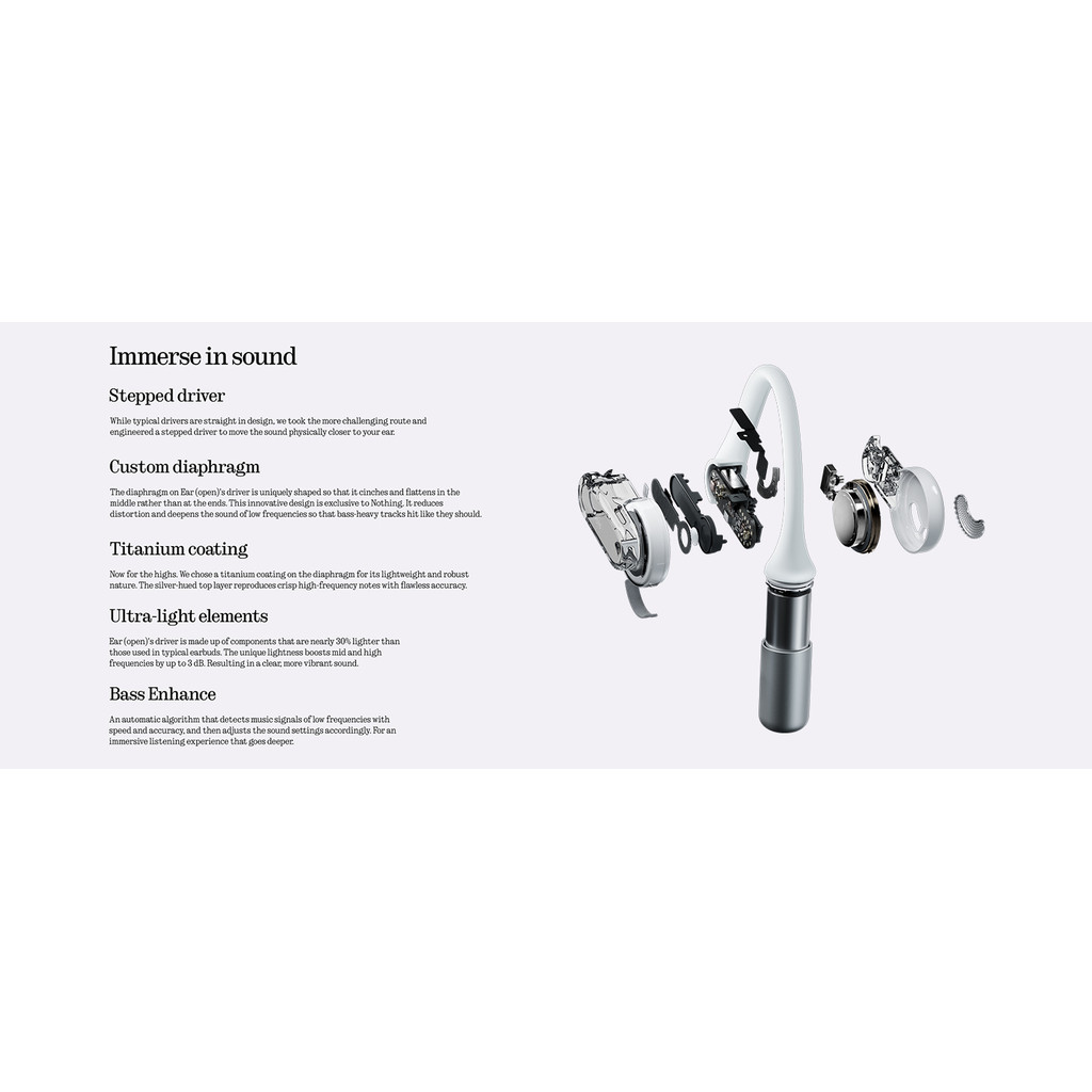 Nothing Ear (Open) Open-Ear Headphones, Earbuds with Earhooks, Clear Voice Technology with 2 Mics, BT 5.3, Fast Charging