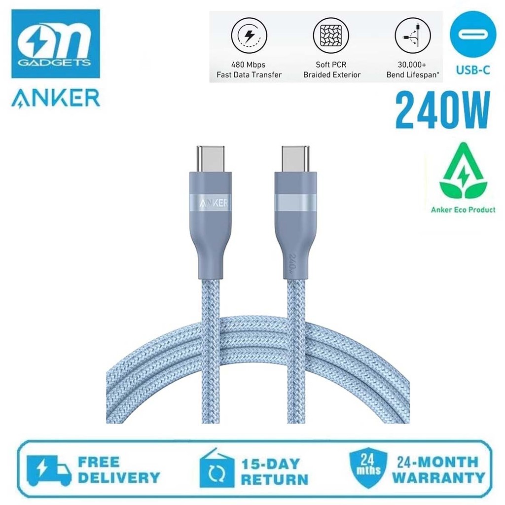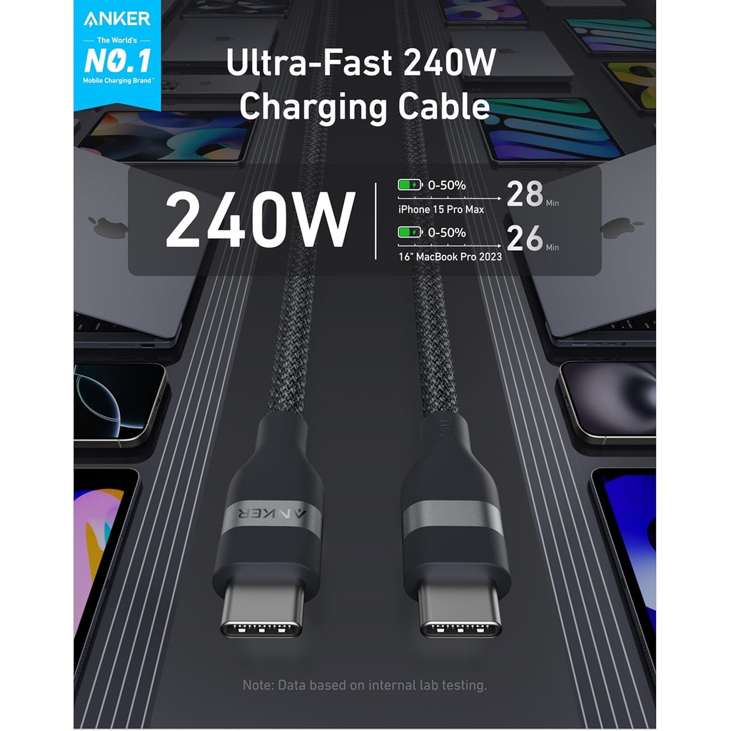 Anker A82E2 Nano USB C Cable, 240W 3/6 ft Flexible Multi-Color Braided Cord, Fast Charging Type C Charger