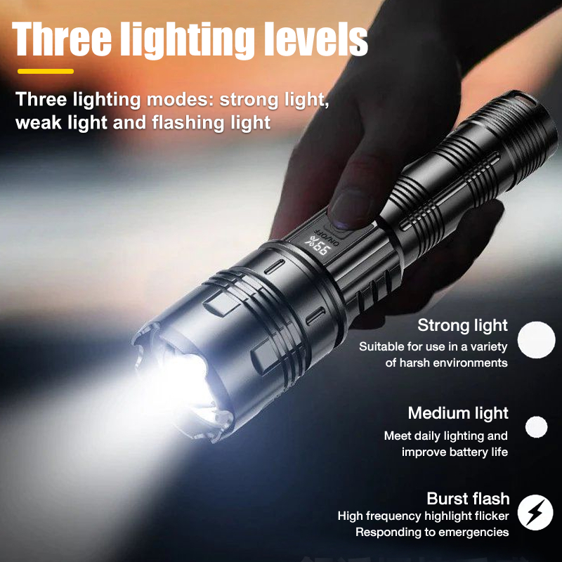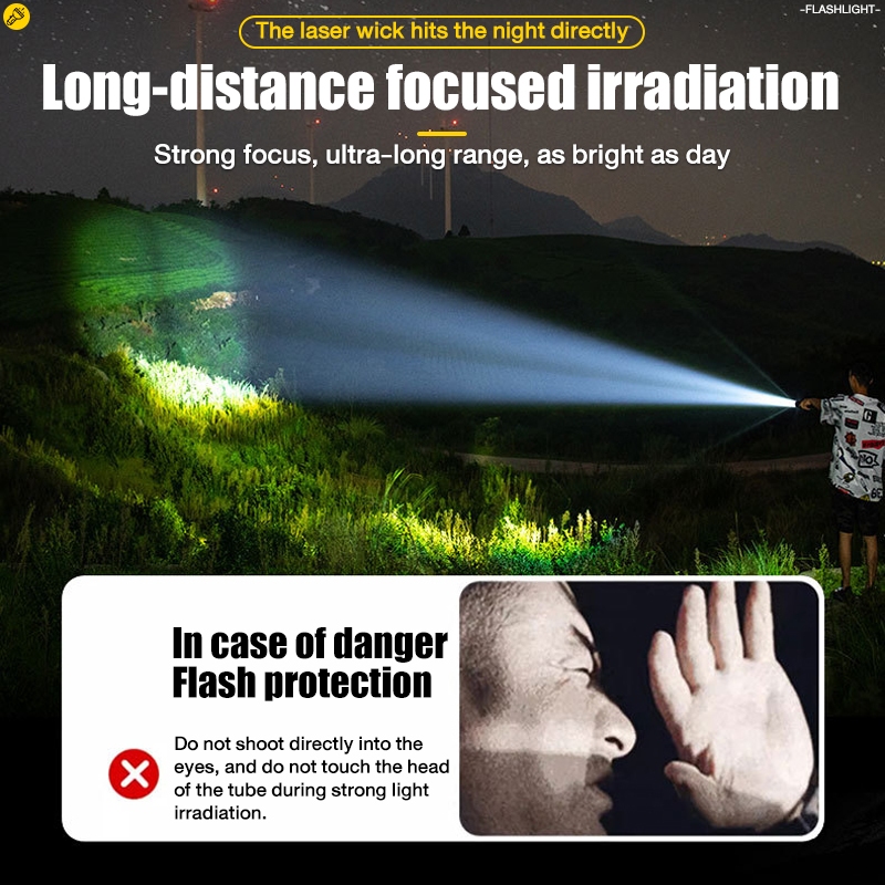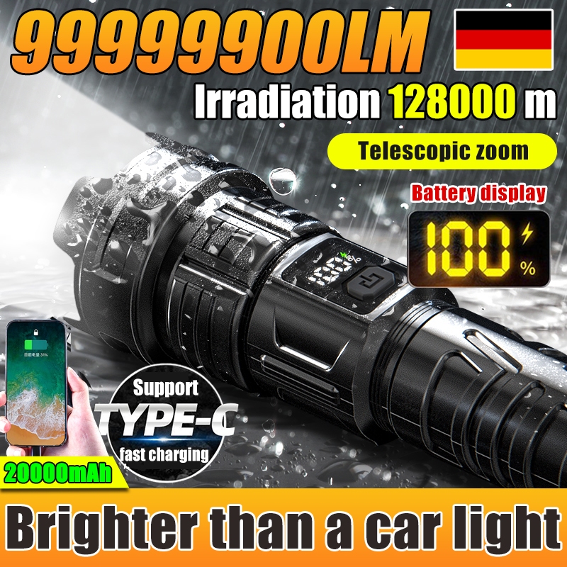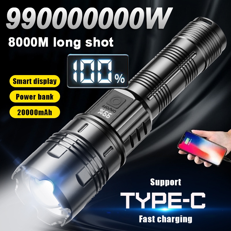 【24 hour shipping】LCD zoom lampu suluh terang jarak jauh torch light super bright 100000lm flashlight torch light rechargeable lampu suluh waterproof led 520a zooming 200000 lumen