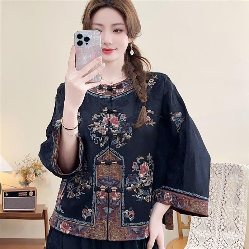 New Chinese Style Top Retro Loose Cotton Linen Ethnic Style Jacket Buckle Embroidery#新中国风上衣复古宽松棉麻民族风外套盘扣刺绣#yu6.2