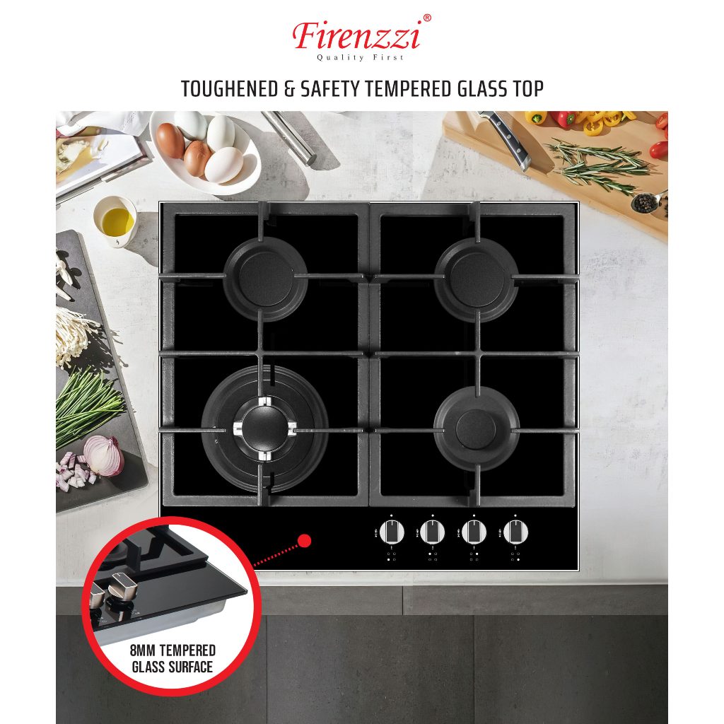 Firenzzi FH-6408 SS 60CM Gas Hob Built-In Stainless Steel Hob 4 Burners Safety Valve 3 Sabaf Burner