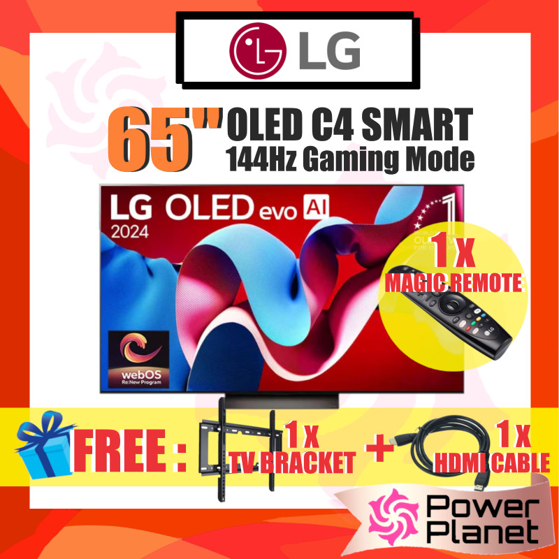 LG 65'' OLED evo OLED65C4PSA AI TV C4 144Hz Gaming Mode Dolby Vision & HDR10 4K UHD (2024) (FREE HDMI CABLE + TV BRACKET