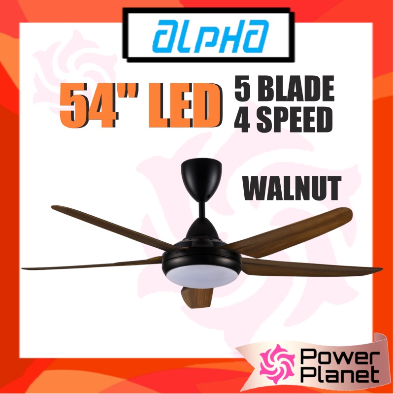 Alpha cosa Ceiling Fan 54" with LED Light Xpress-5B/54 LED (Black or White or Walnut) 5 Blade , 4 Speed