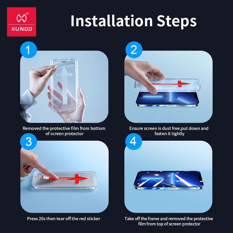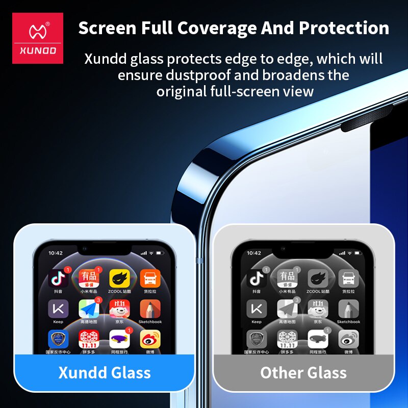ORIGINAL XUNDD 2.5D Tempered Glass iPhone 15 14 13 12 11 iPhone13 iPhone12 iPhone11 Pro Max EASY INSTALLATION with Kit