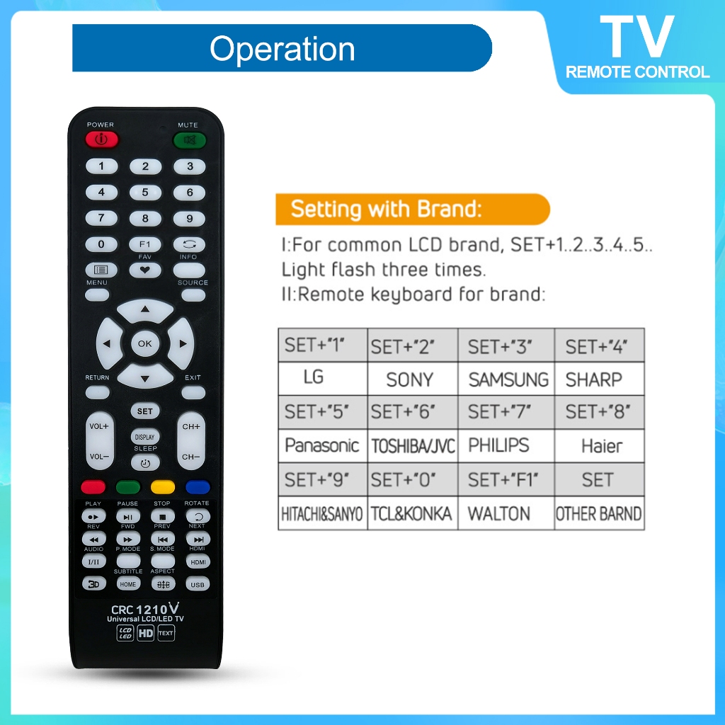 Universal LED / LCD TV Remote Control Refer for ALL TV brands CRC1210V