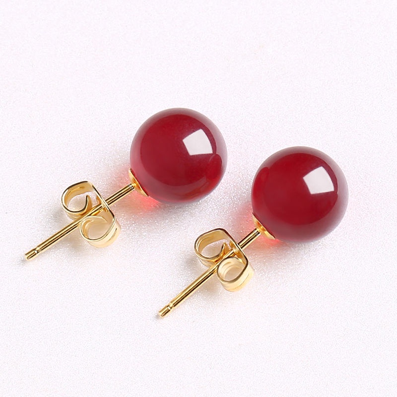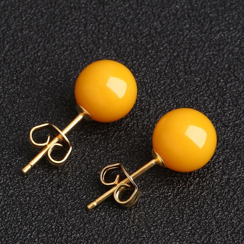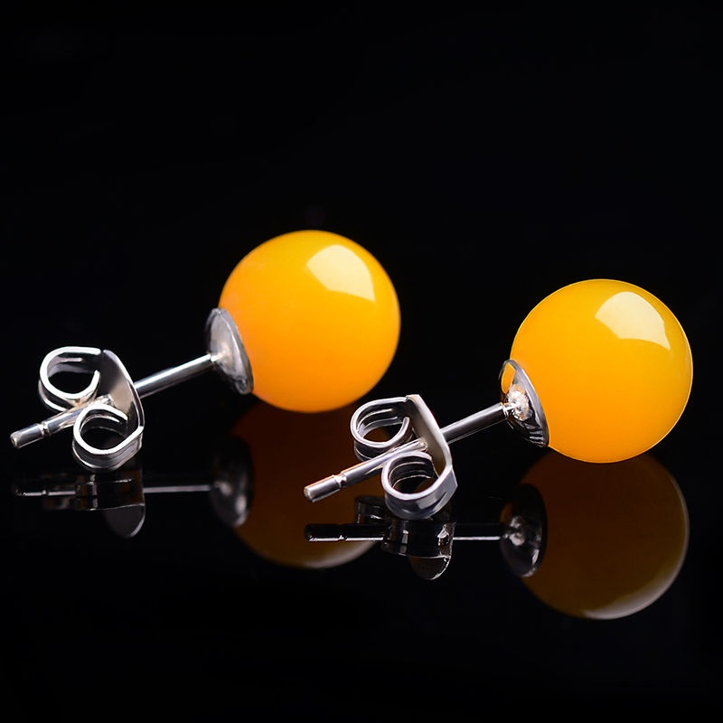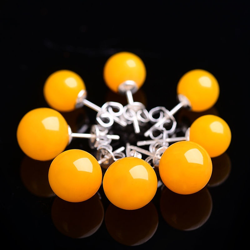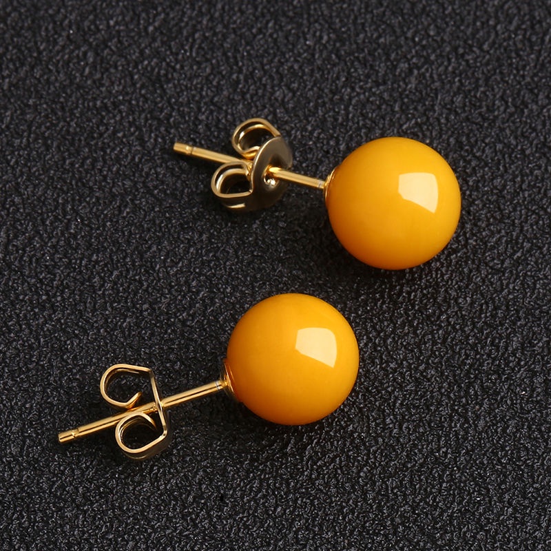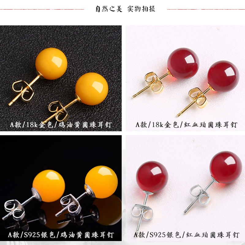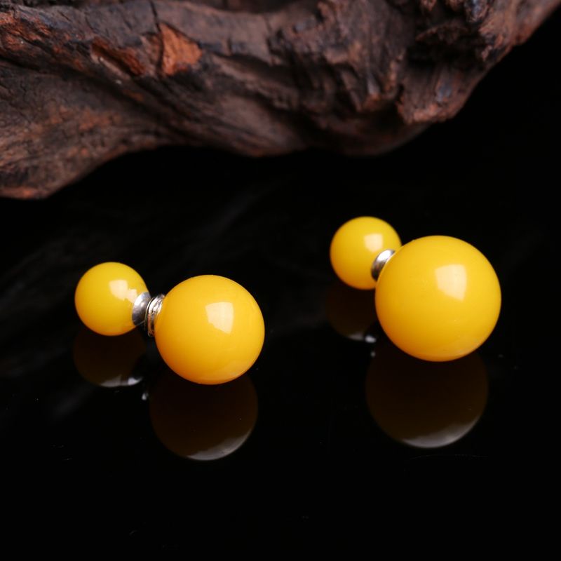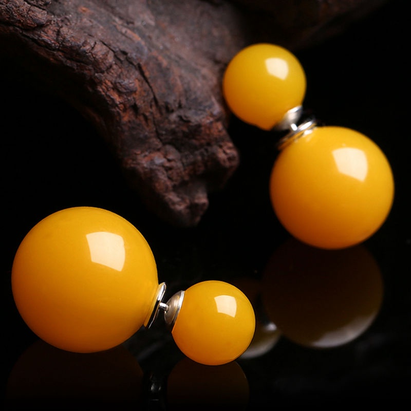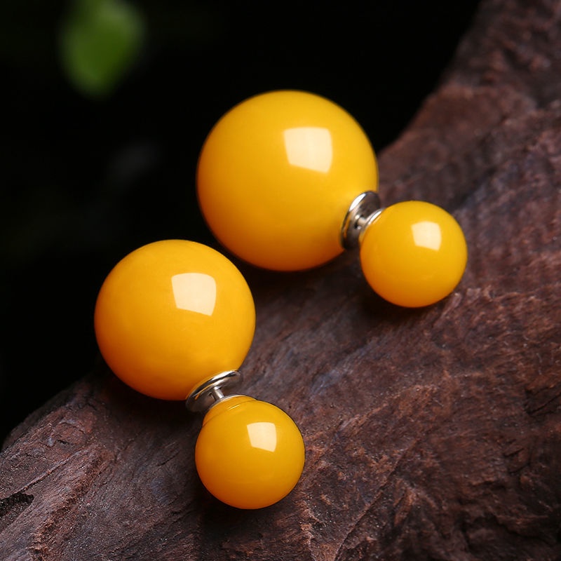 Beeswax earrings double-sided round beads two-wear earrings蜜蜡耳钉双面圆珠两戴款耳坠老蜜鸡油黄血珀耳钉女款防过敏925银