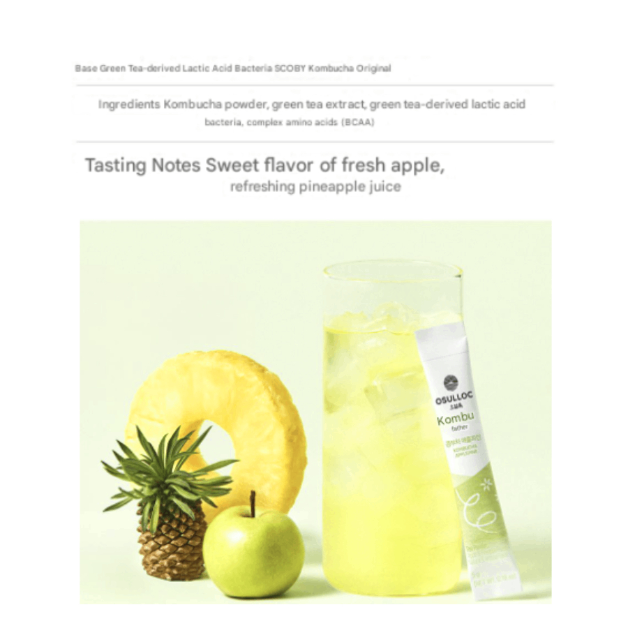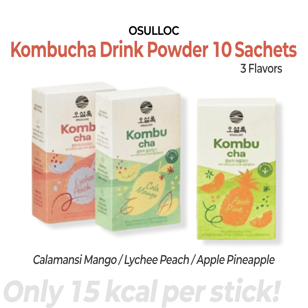 OSULLOC Korean Kombucha Drink Powder 10 Sachets | 3 Fruity Flavors (Calamansi Mango / Lychee Peach / Apple Pineapple)