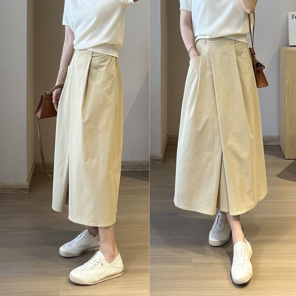Simple All-Match Anti-Wrinkle Asymmetrical Solid Color Skirt
