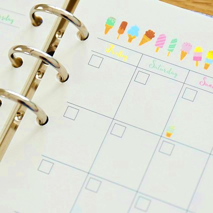 IR001 A5 A6 Hello Summer Girl Ice Cream Fruit Ring Planner Insert