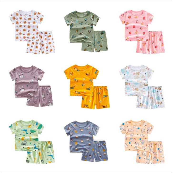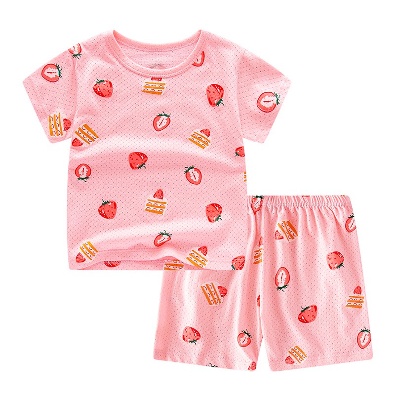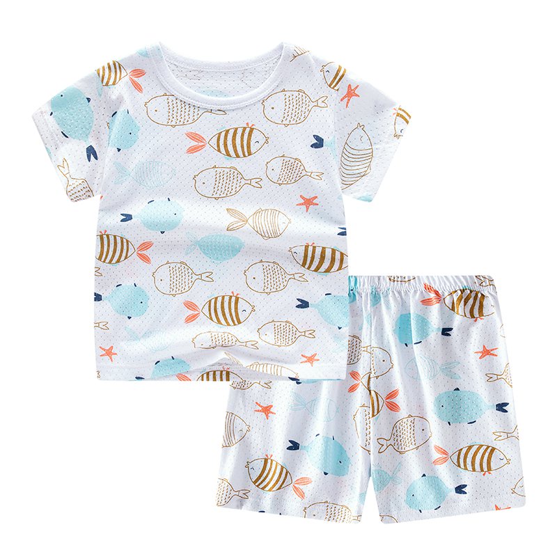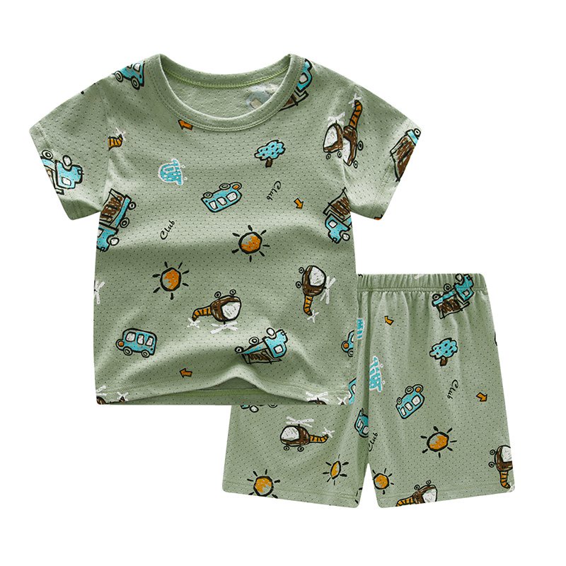 2-12 Years Kids Boys Girls Cute Cartoon Sports Clothes Set Children Cotton Short Sleeve T shirt+ Short Pant Suit