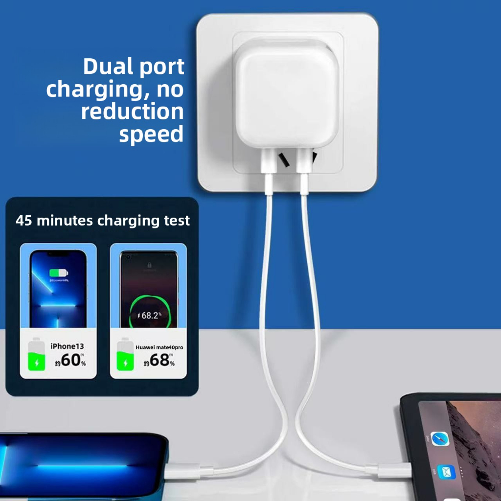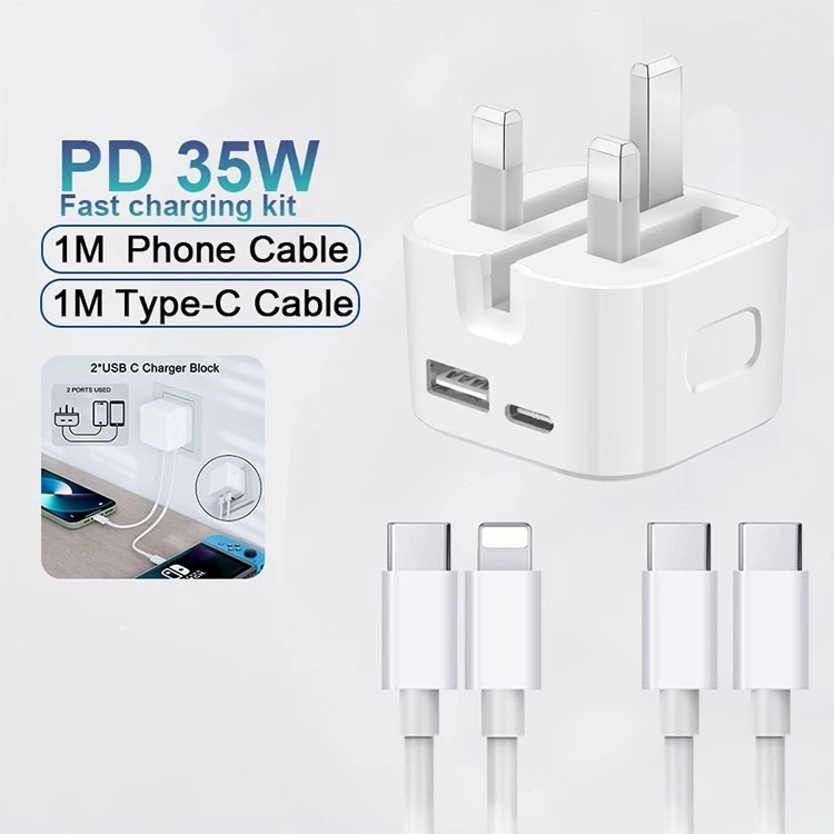 35W super fast charging dual-port adapter with USB-A+C charging data cable, suitable for various mobile phone charging a