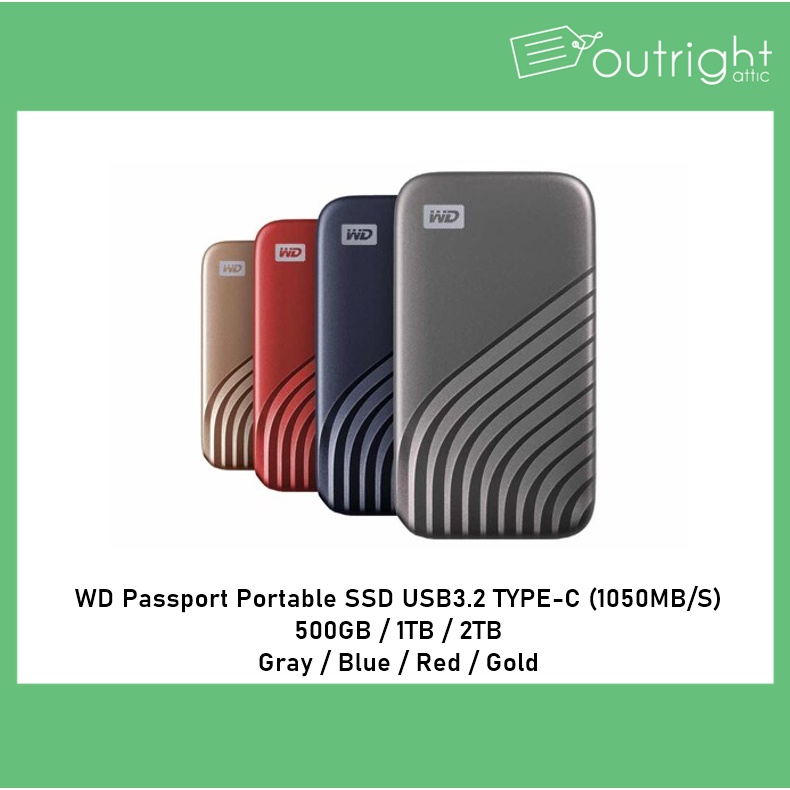 WD Passport Portable SSD USB3.2 TYPE-C 500GB / 1TB / 2TB (Gray / Blue / Red / Gold)