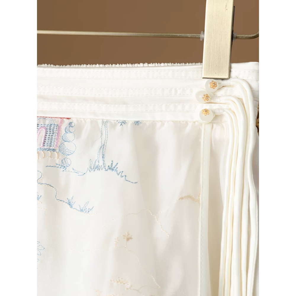 New Chinese style exquisite landscape embroidery, improved Hanfu horse face skirt, women's A-line European mesh mesh buc