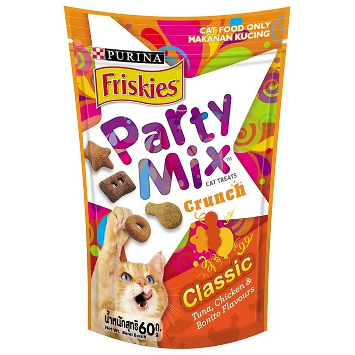 Purina Friskies Party Mix 60g / Purina Felix Play Tubes 50g - Purina Cat Treats Snek Kucing