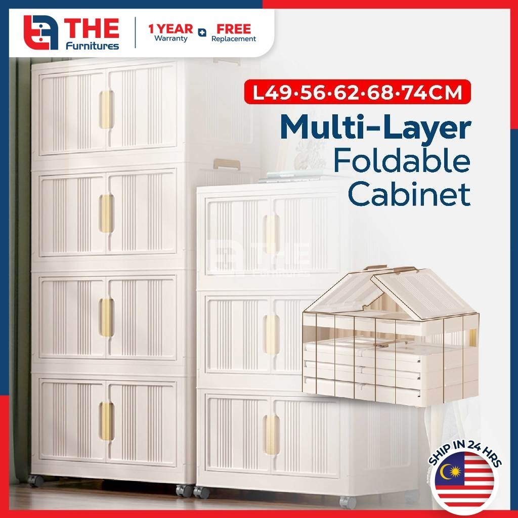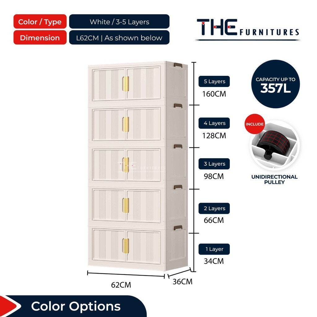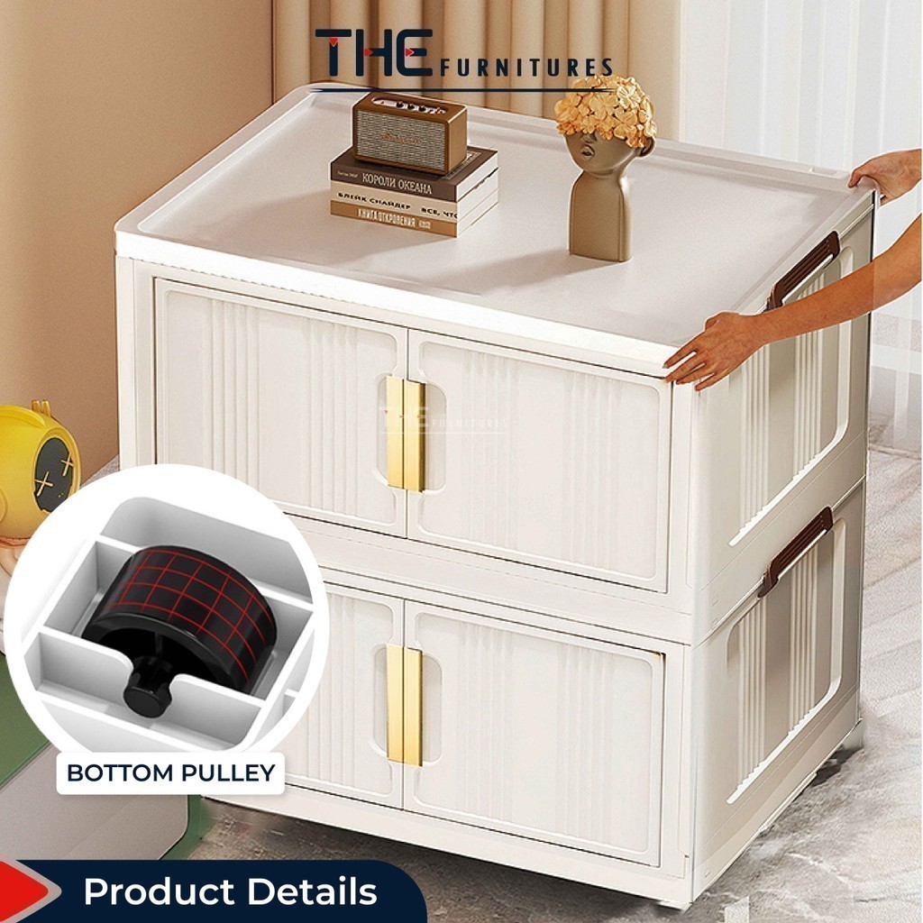 【𝗦𝗵𝗶𝗽𝗽𝗶𝗻𝗴 𝗣𝗿𝗼𝗺𝗼】THE L49-74cm (3-5 Layers) Versatile Stackable Foldable 2 Doors Storage Cabinet Box With Pulley