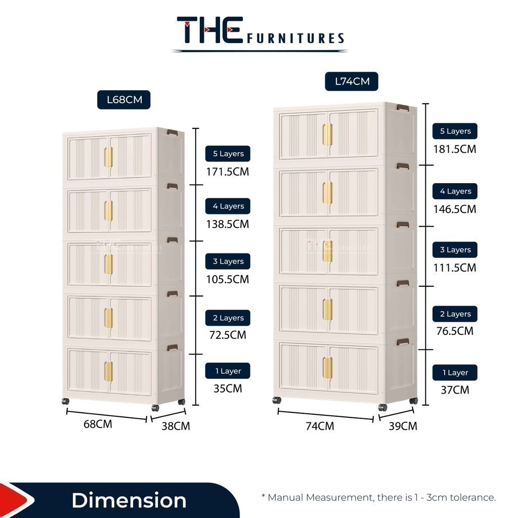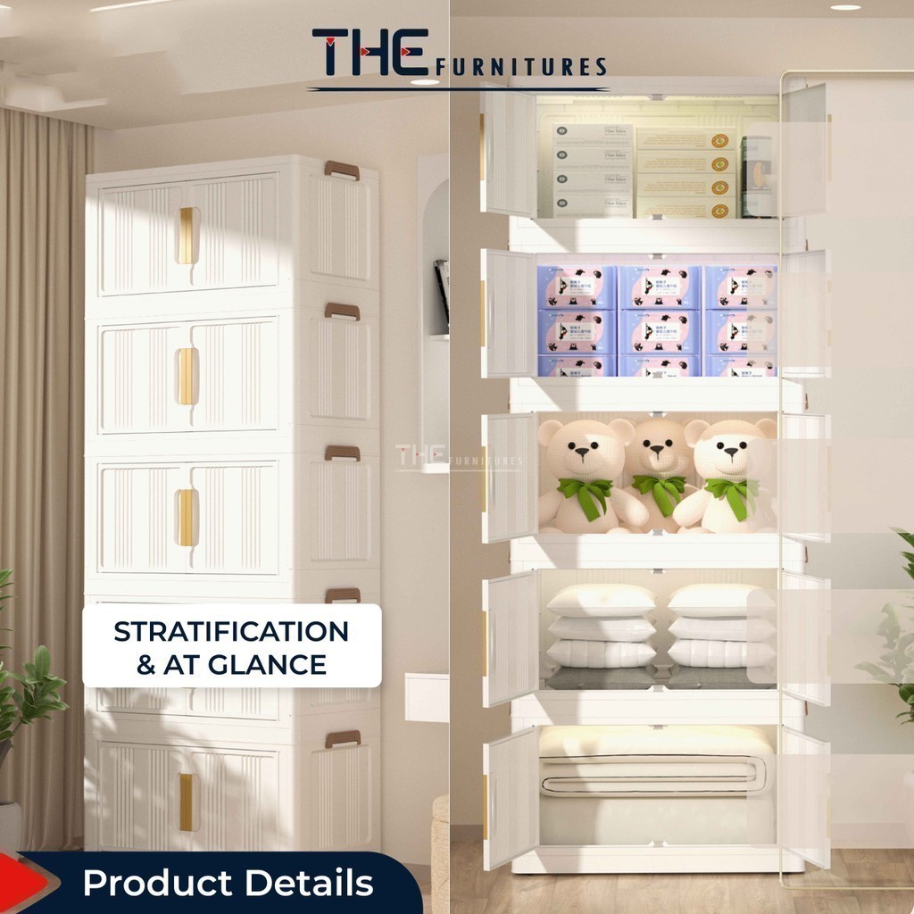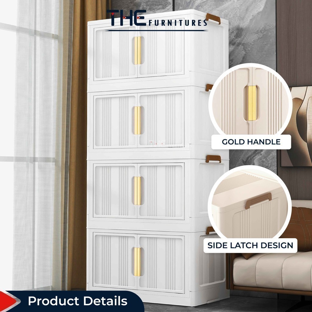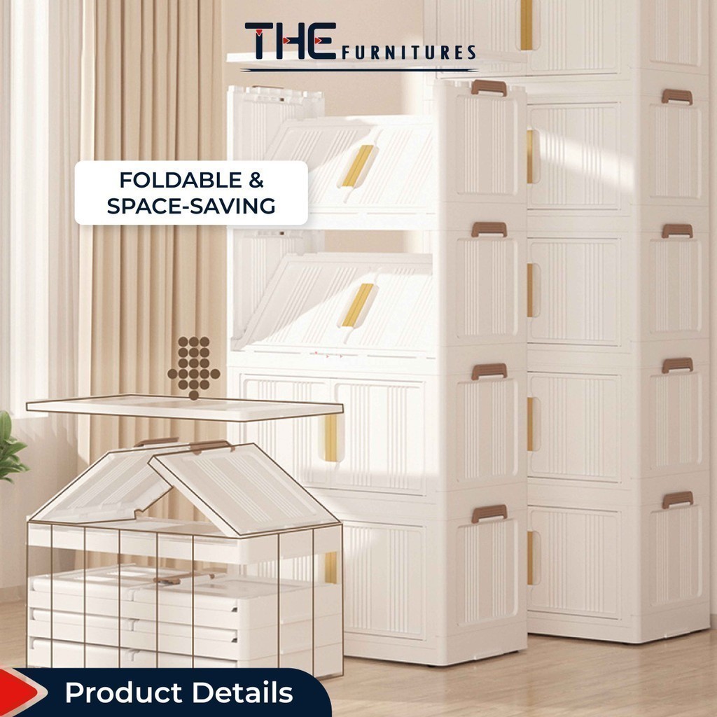 【𝗦𝗵𝗶𝗽𝗽𝗶𝗻𝗴 𝗣𝗿𝗼𝗺𝗼】THE L49-74cm (3-5 Layers) Versatile Stackable Foldable 2 Doors Storage Cabinet Box With Pulley