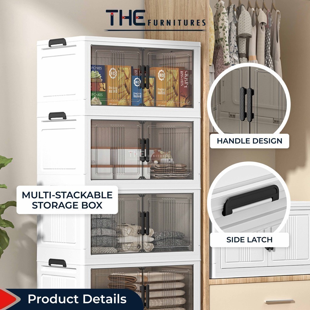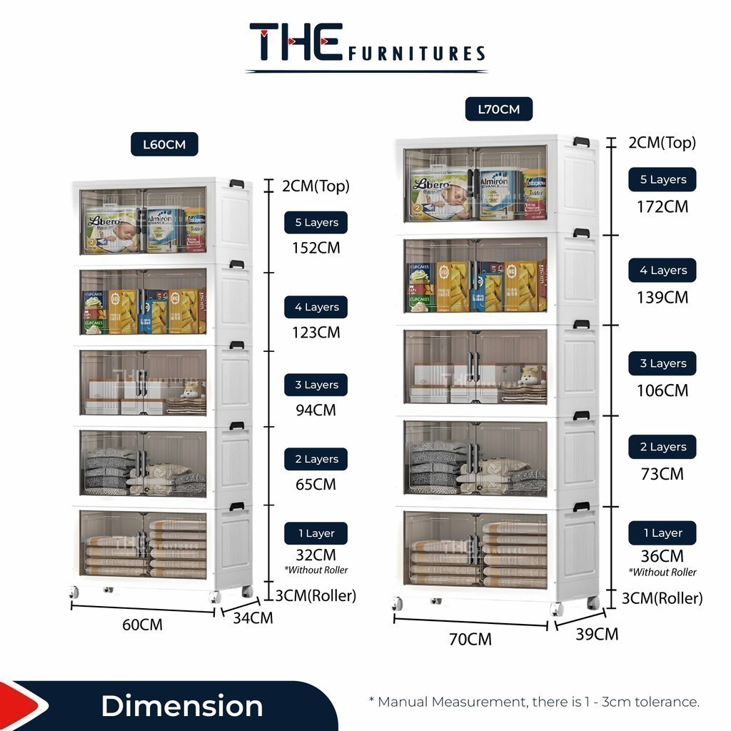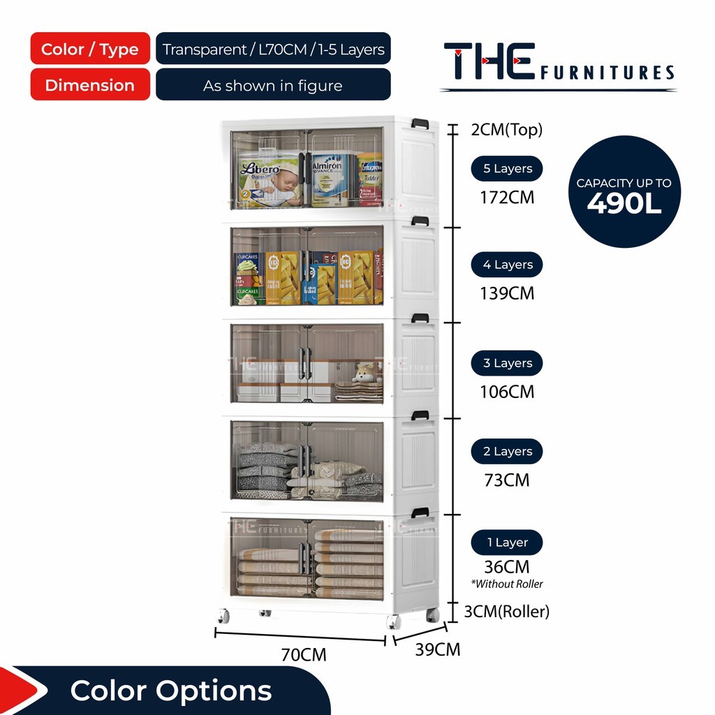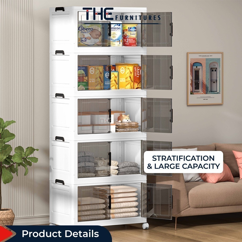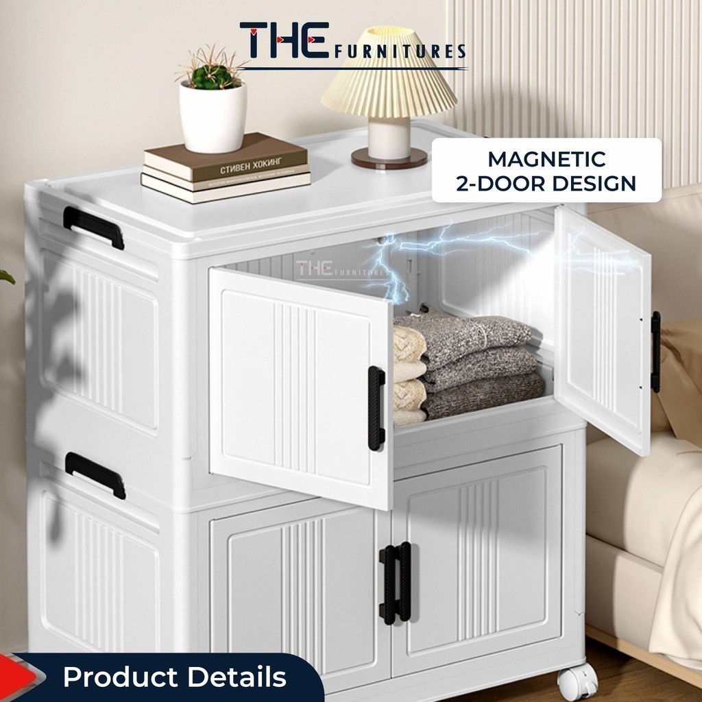 【𝗦𝗵𝗶𝗽𝗽𝗶𝗻𝗴 𝗣𝗿𝗼𝗺𝗼】THE L50-70cm (1-5 Layers) 2 Doors Foldable Stackable Storage Cabinet Box With Roller