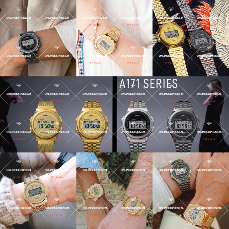 CAS Vintage A171 Viral Couple Women's Watch Jam Tangan Perempuan Wanita Unisex Lelaki Mens Watches Rose Gold A168 Casio