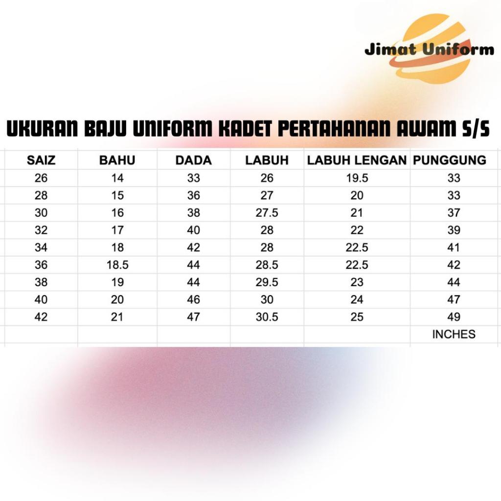 Baju Uniform Kadet Pertahanan Awam (KPA)(JPA)(APM) Lengan Pendek - Free Jahit Badges / Shipping Everyday