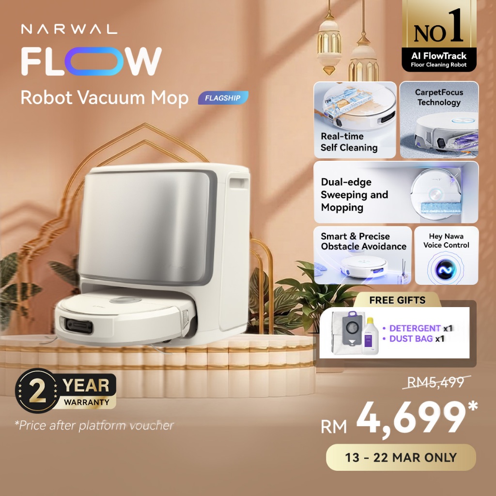 [New Flagship] Narwal Flow Robot Vacuum & Mop | Real-Time Self-Cleaning Track Mop | 22,000 Pa Suction | Dual-Camera AI