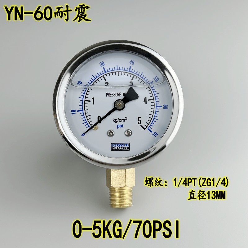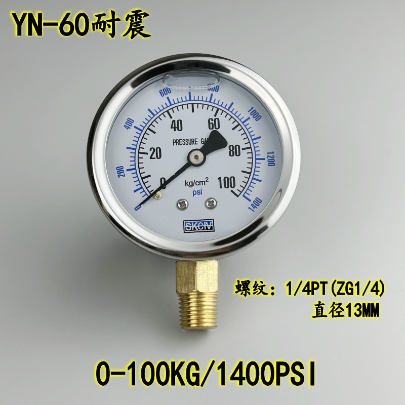 Stainless Steel YN60 Shock-Resistant Pressure Gauge 1/4PT Shock-Resistant Vacuum Negative Pressure Oil Pressure Hydraulic Gauge Water Press