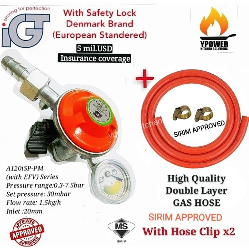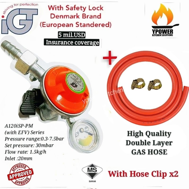 IGT SAFETY GAS REGULATOR A120isp With 1.5 meter SIRIM High quality double layer gas hose&clip