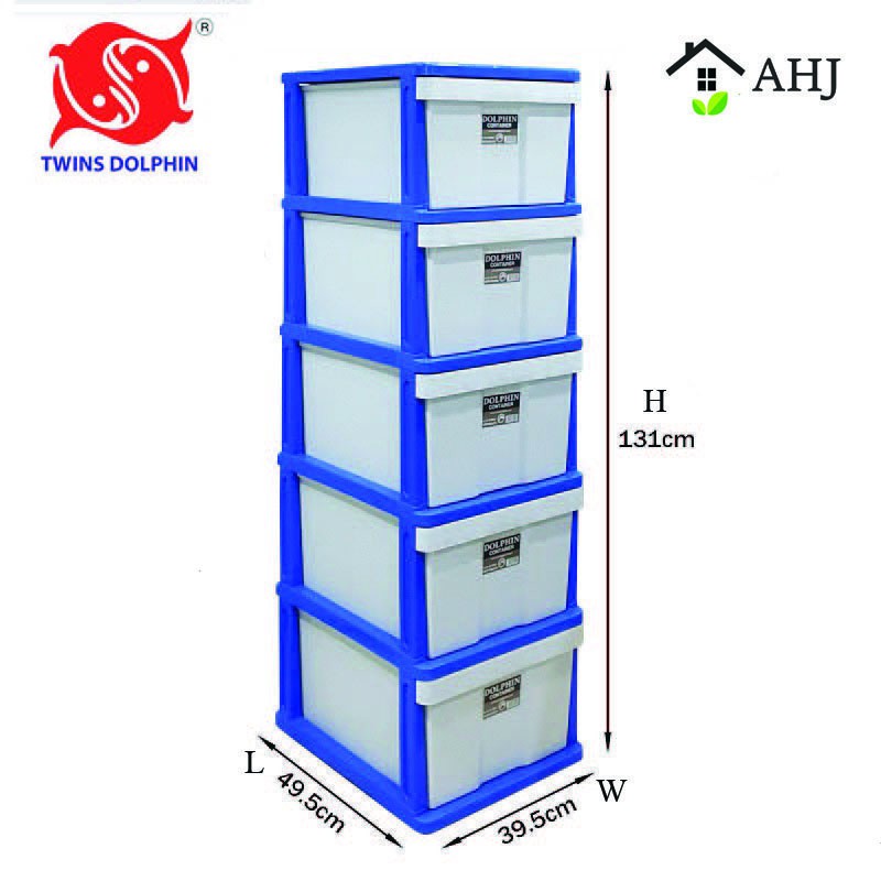 Twins Dolphin 5 Tier Plastic Drawer / Cabinet / Storage Cabinet 292/L5 / 5 tingkat laci plastik / almari baju