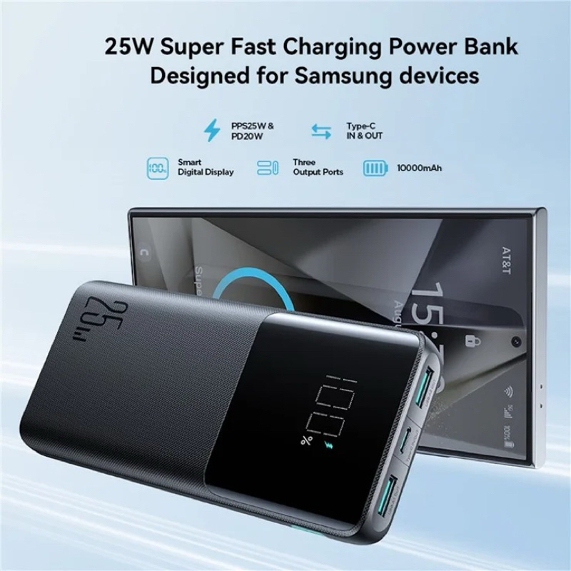JOYROOM JR-PBF20 10000mAh 25W Fast Charge Power Bank Digital External Battery - Black