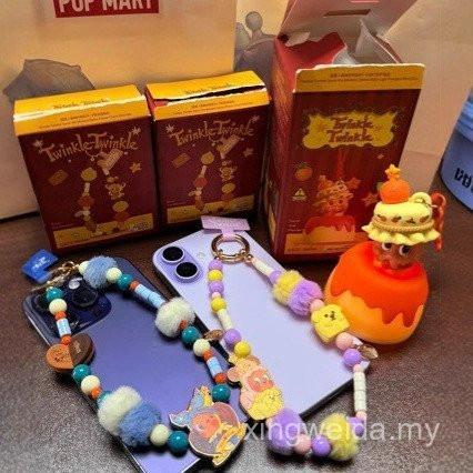 Twinkle twinkle Pom-pom beaded phone charm blind box bag charm cartoon style loket telefon bimbit