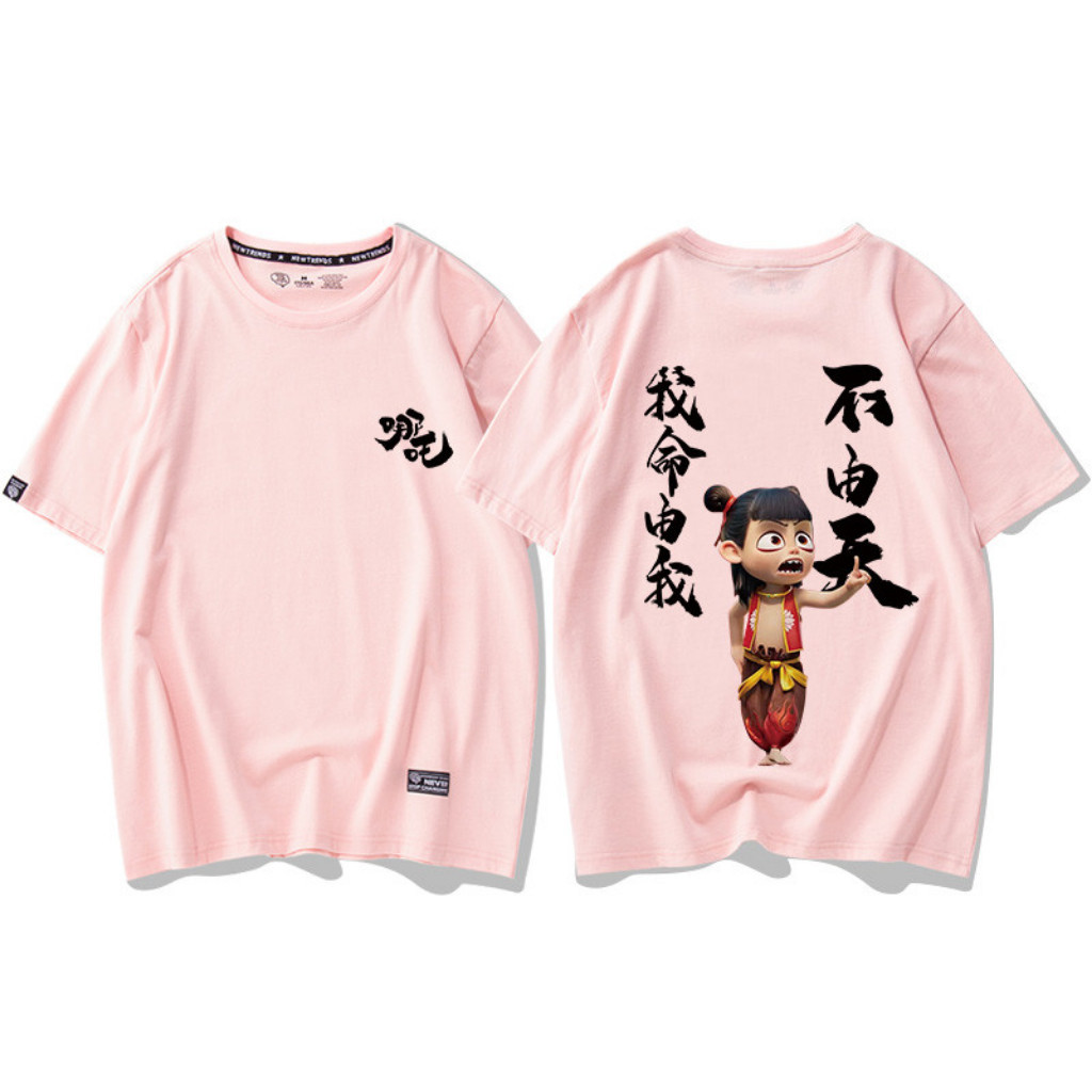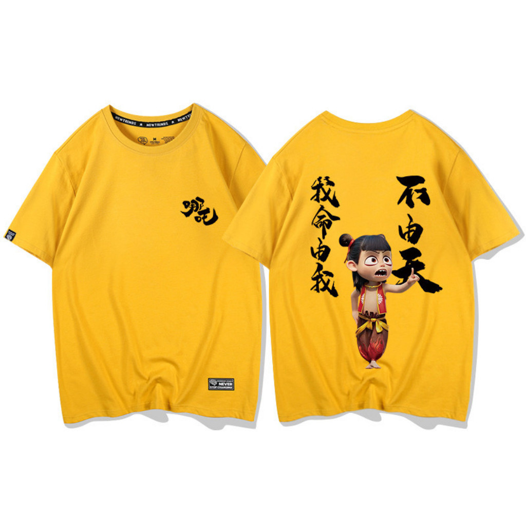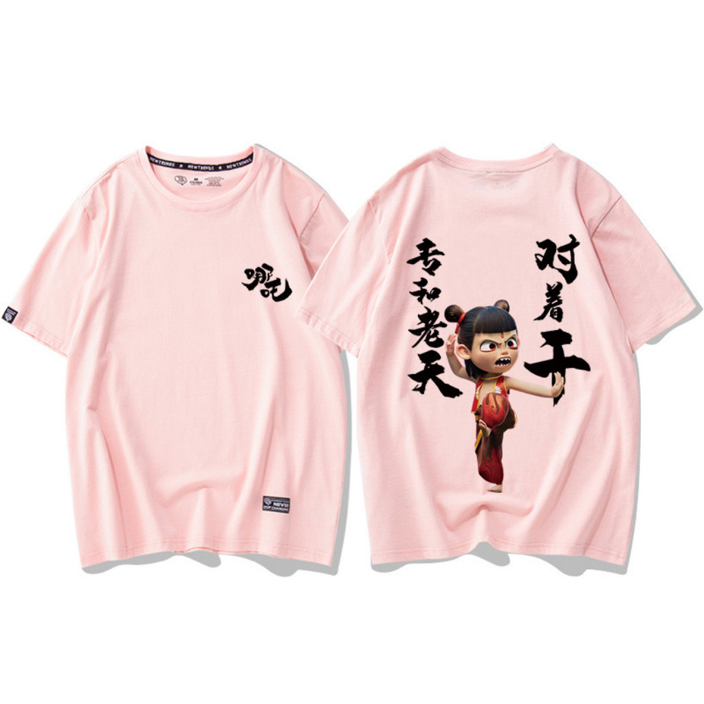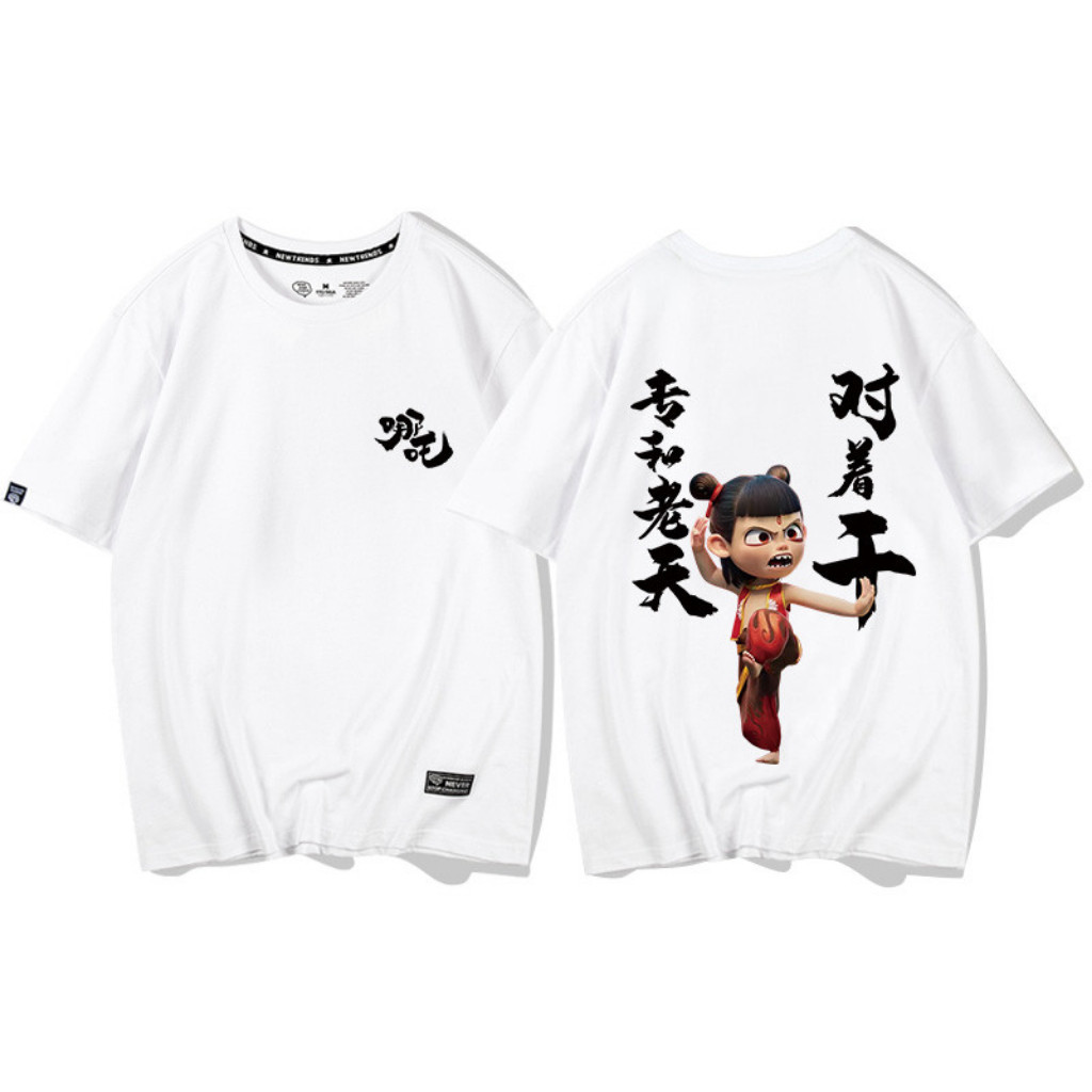 newS-5XL Nezha Demon T-Shirt Hot Cartoon Nezha Print Clothing Unisex Cotton Loose Baju Short Sleeve Top hot