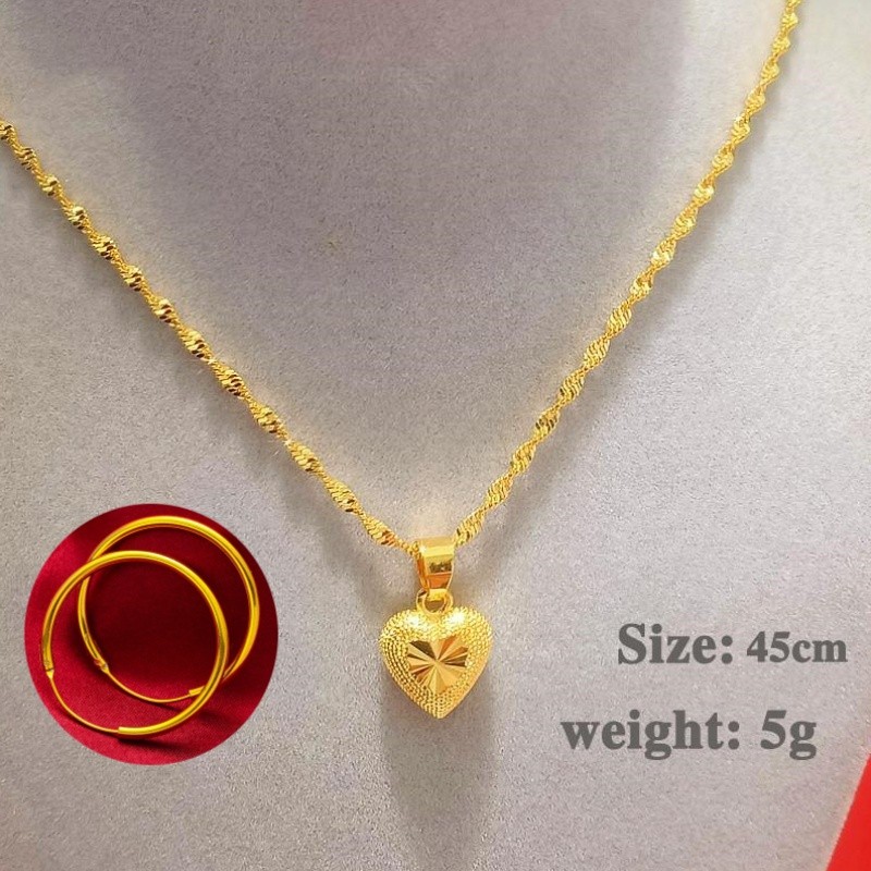 916 Gold Original Necklace Women's Peach Heart Pendant Buy 1 Get 1 Free Chain and Pendant Rantai Leher Perempuan