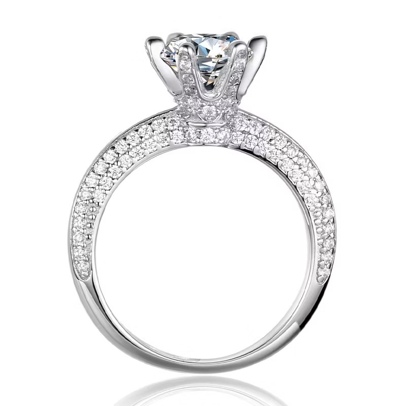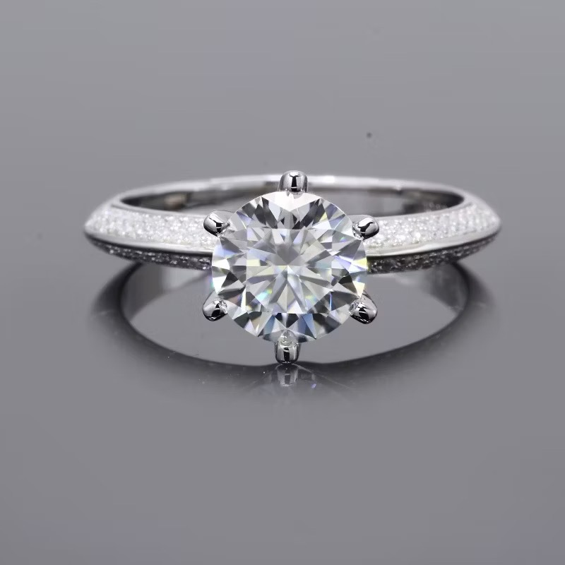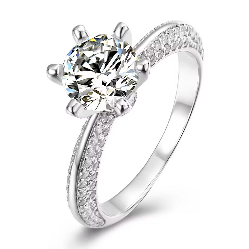 Moissanite Diamond Ring Female Half-Wall River Mountain Six-Claw Ring Hao Inlaid Silver