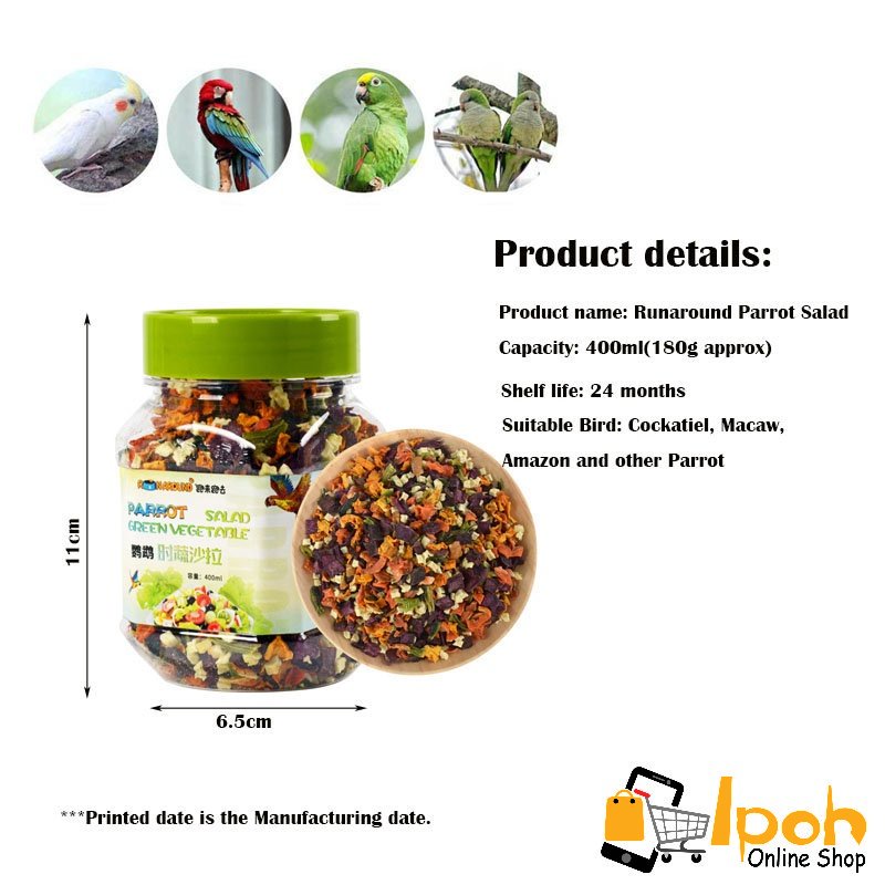 Runaround Parrot Salad Green Vegetable 400ml/180g, cockatiel Lovebird Sun conure Budgerigar small parrots bird food
