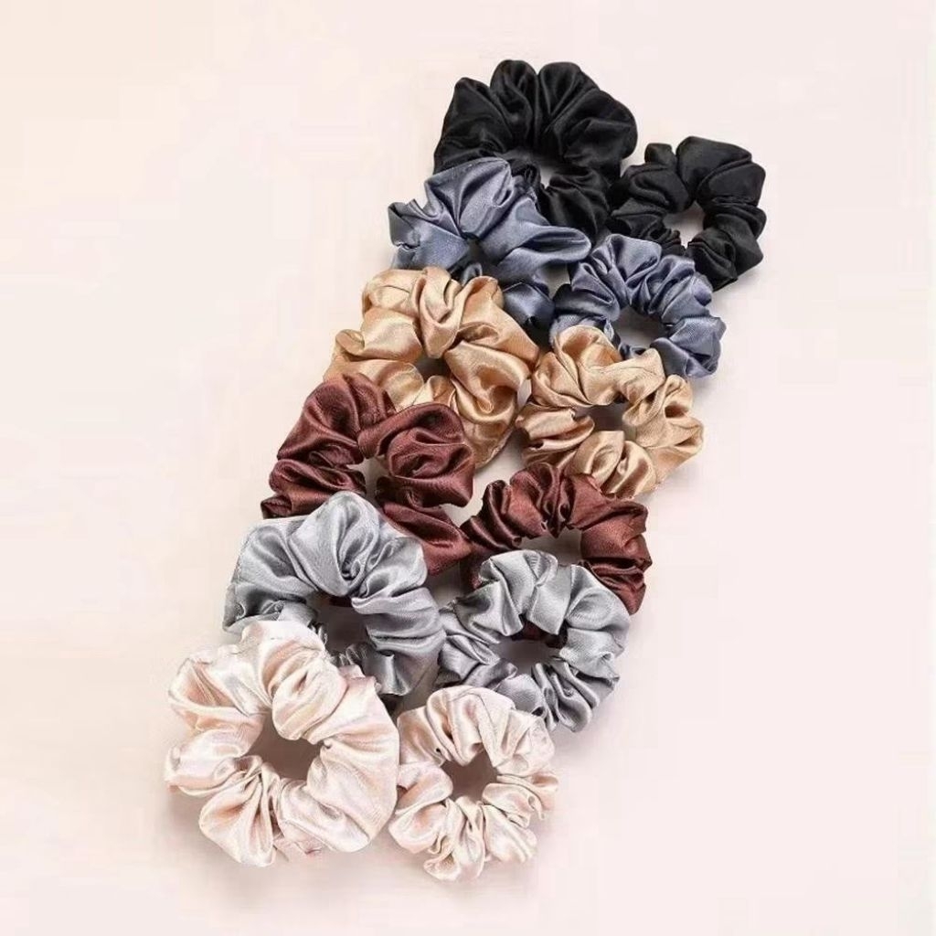 𝗠𝗶𝘀𝘀.𝘂🎀12 Pcs Set Scrunchies Silky Satin Scrunchy Hair Tie Large & Small Scrunchy Hair Tie Set 韩版大肠发圈12件套
