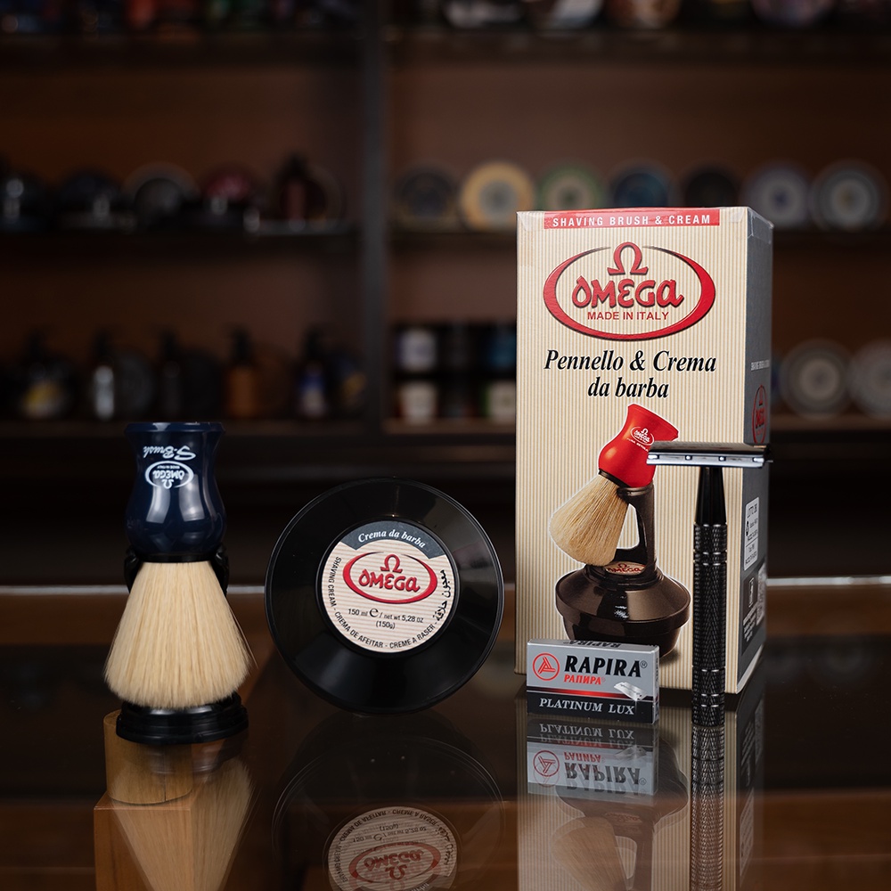 Omega Wet Shaving Starter Kit (Razor,Blade,Brush&Soap) All in 1 Kit