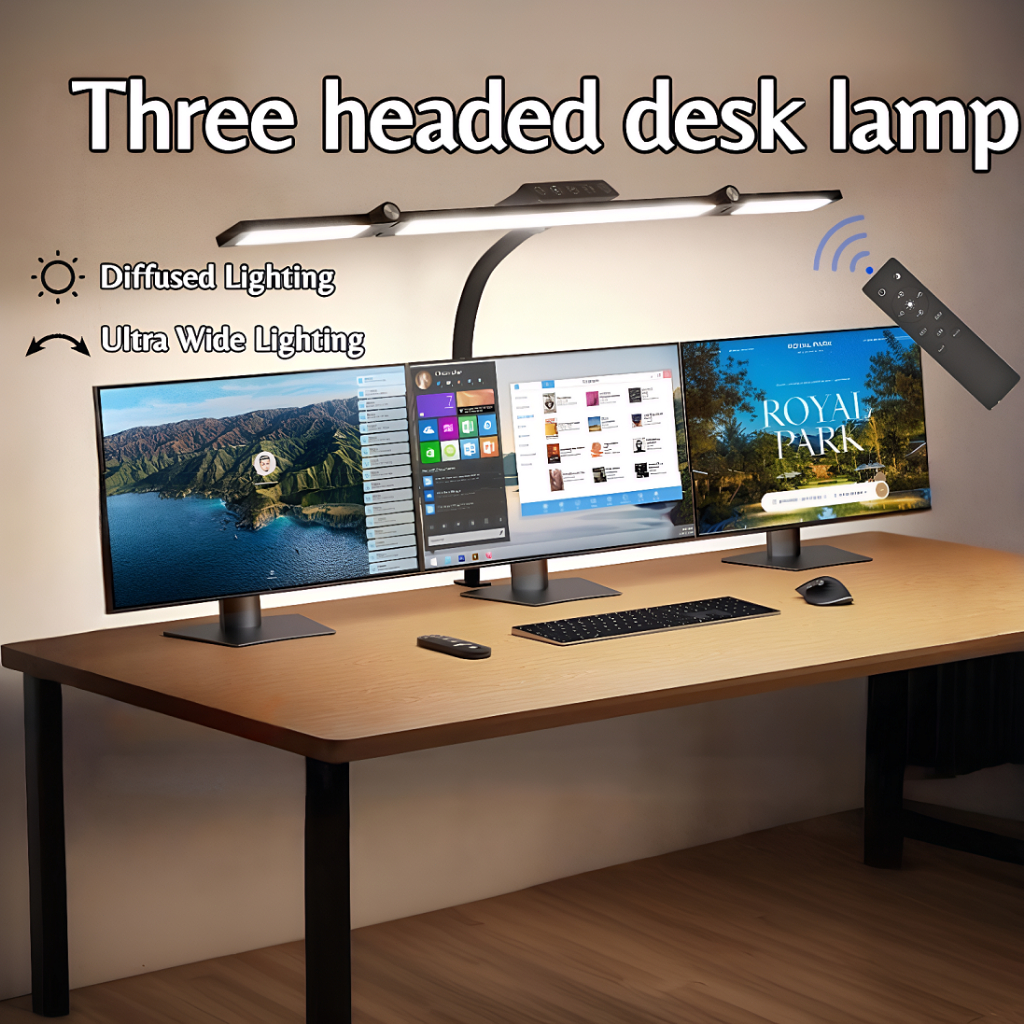 LED Long Arm Three Head Remote Control Student Study Office Eye Protection Lighting Desk Lamp for Study Games Work