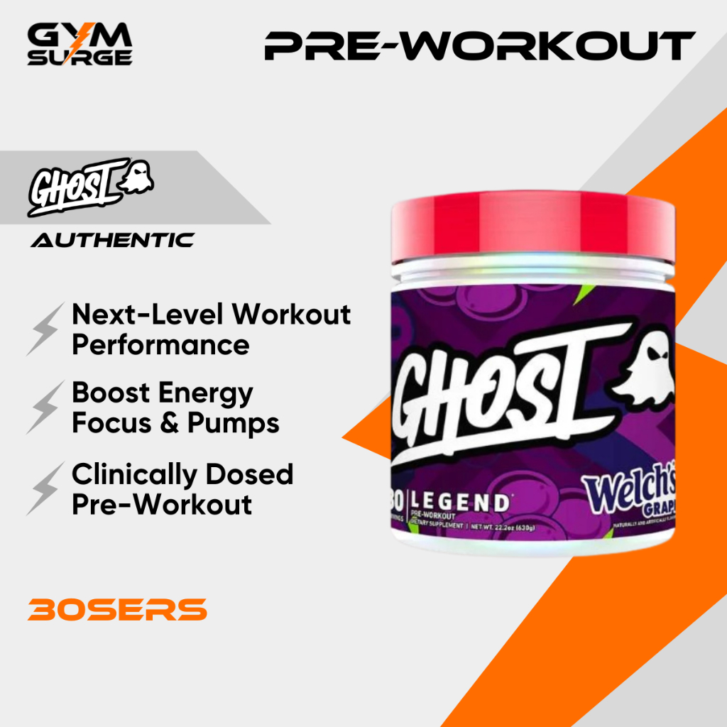 GHOST Legend Pre-Workout Powder, High-Stim, Energy Boost, Sugar-Free, Various Flavors, 30 Servings