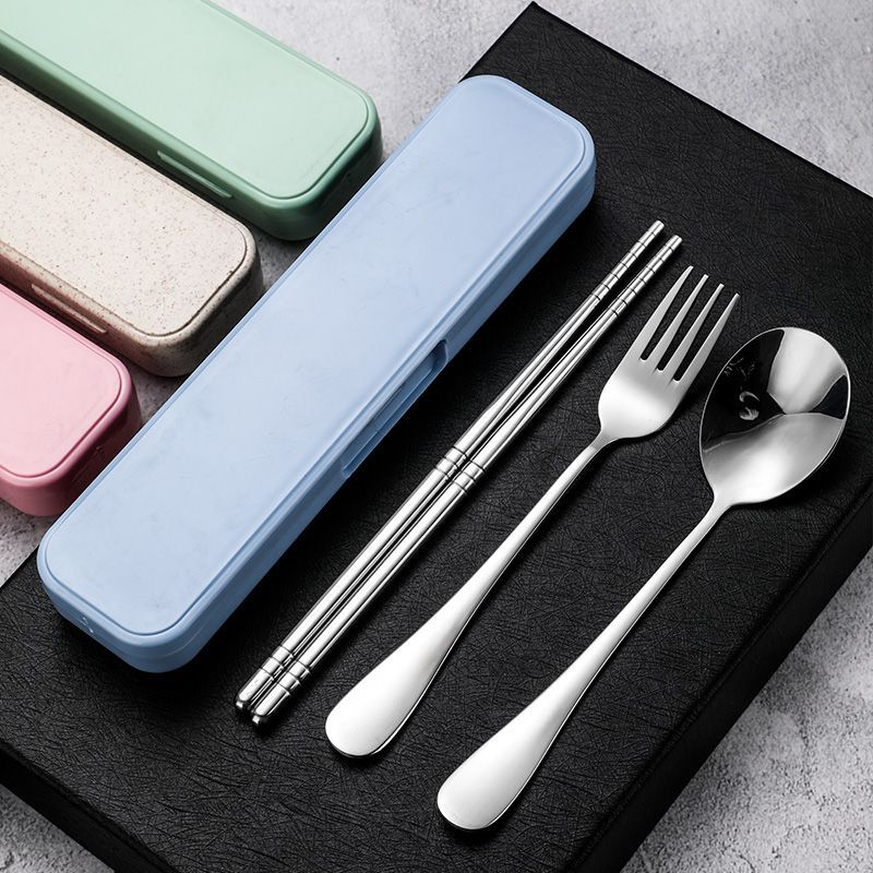 便携304不锈钢筷子勺子套装勺叉外出餐具pp翻盖收纳盒学生空盒子Portable 304 Stainless Steel Chopsticks Spoon Set Spoon20251105